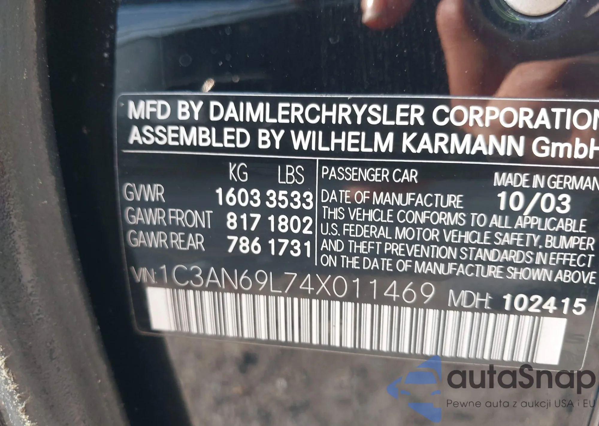 • VIN 1C3AN69L74X011469