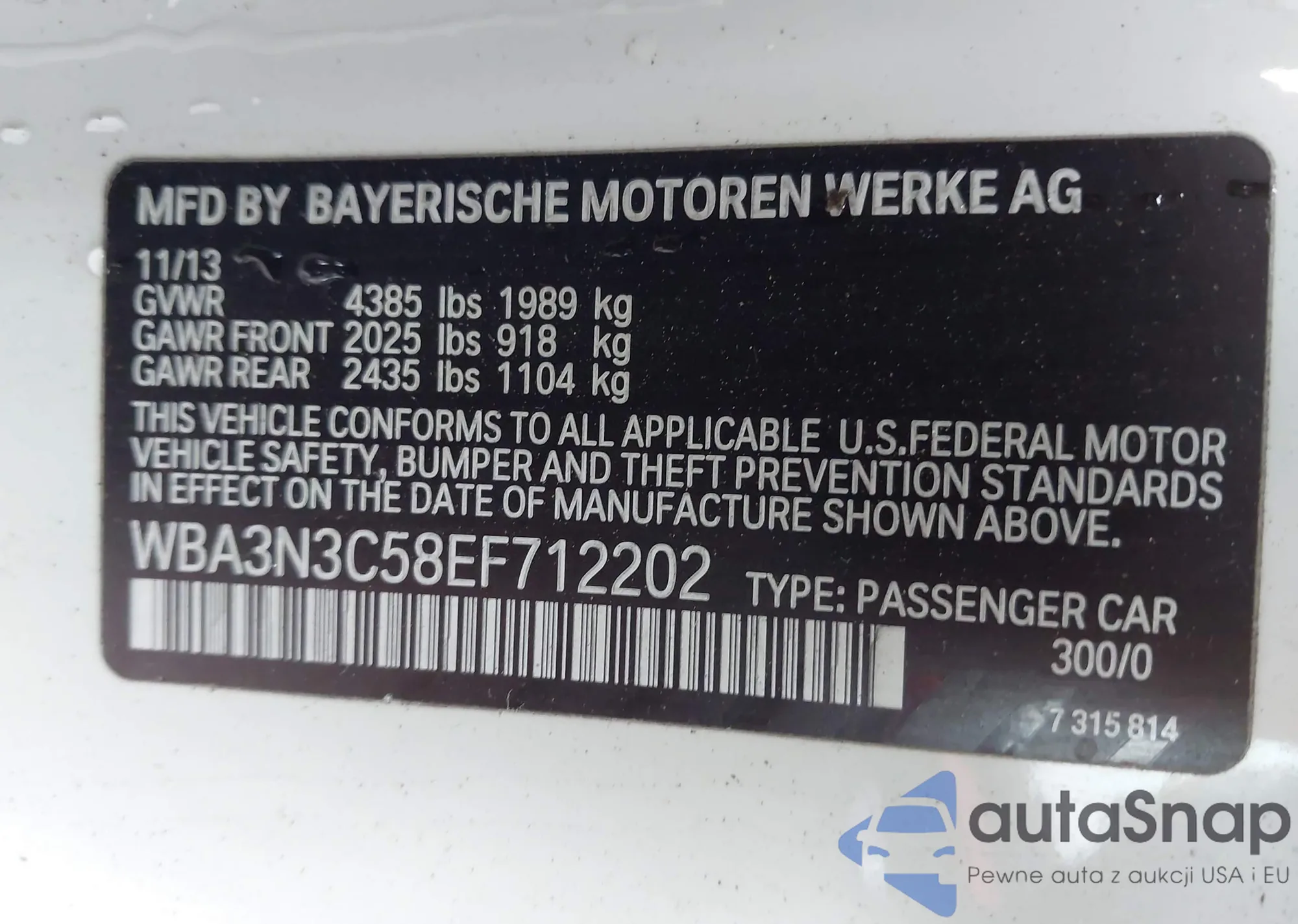 • VIN WBA3N3C58EF712202
