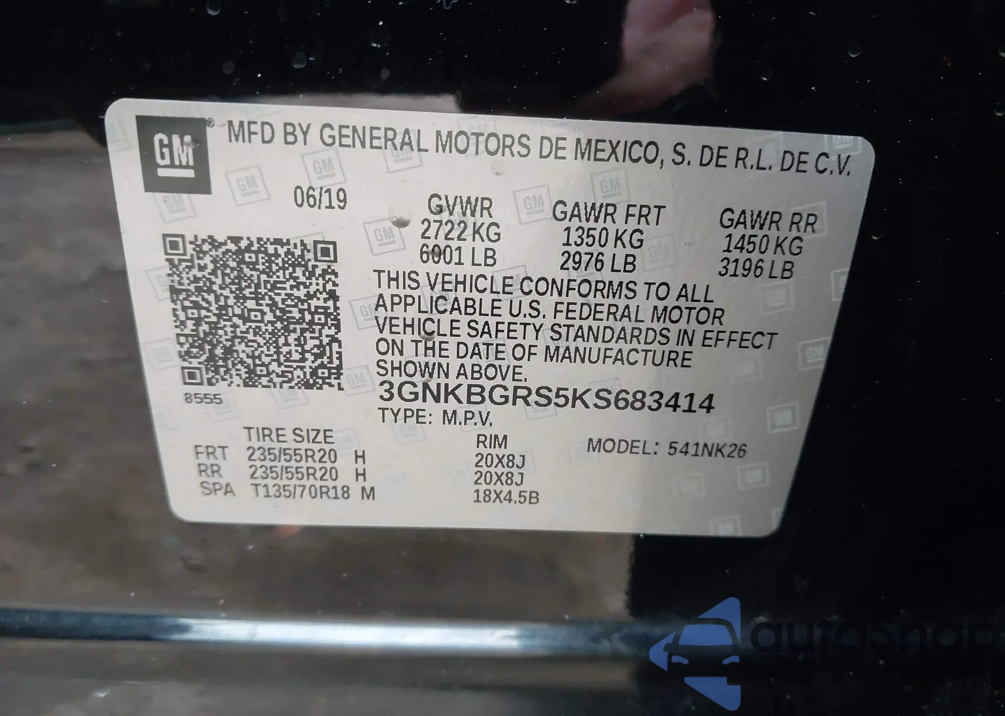 • VIN 3GNKBGRS5KS683414