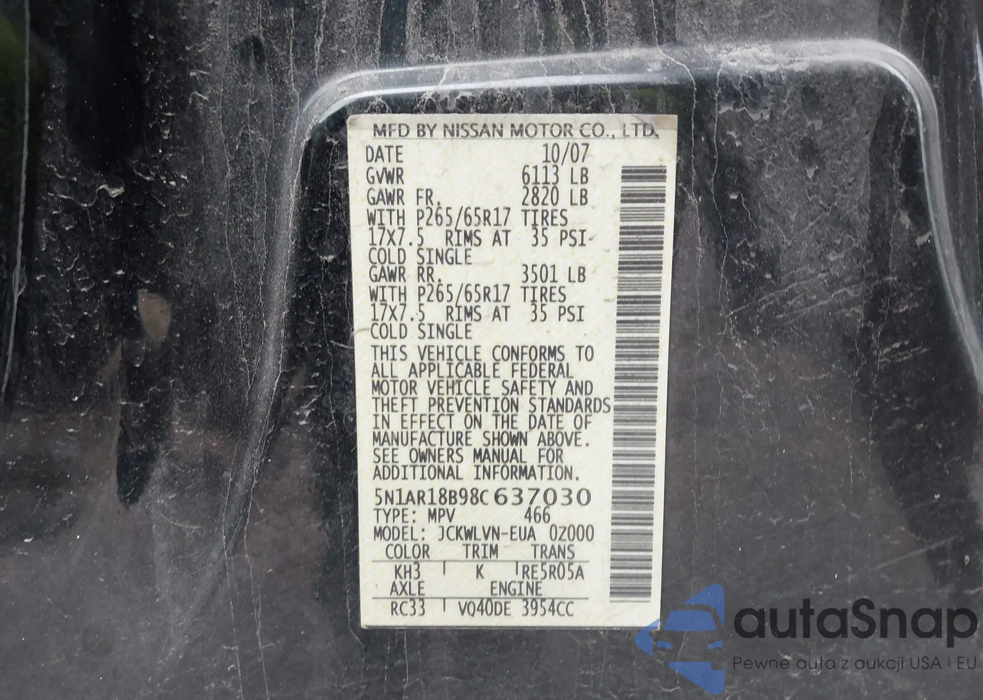• VIN JNKAY01E76M104833