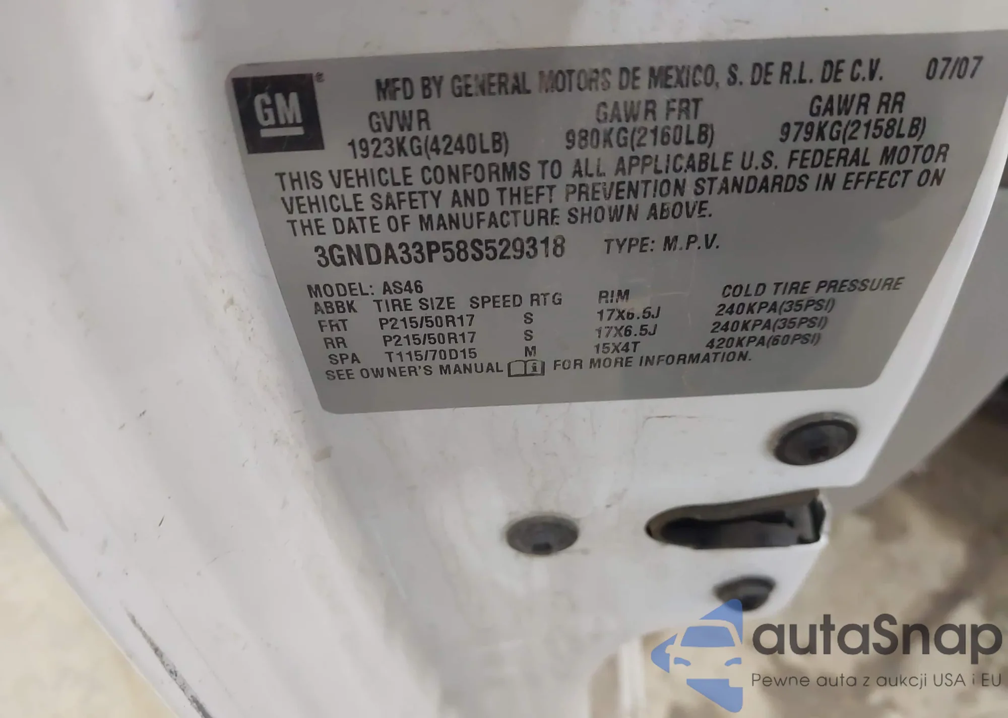 • VIN 3GNDA33P58S529318
