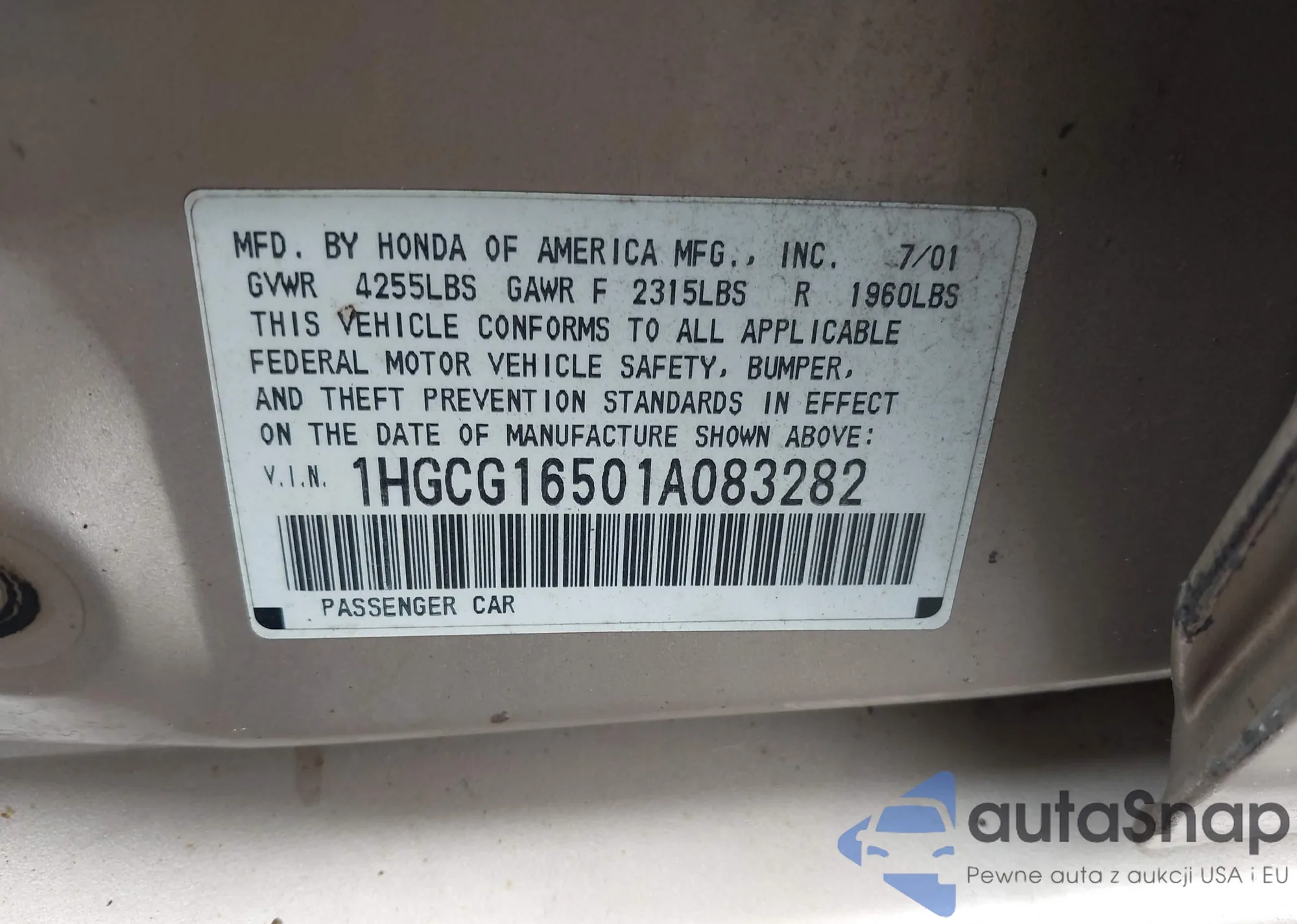 LOT: 42362737 VIN: 1HGCG16501A083282