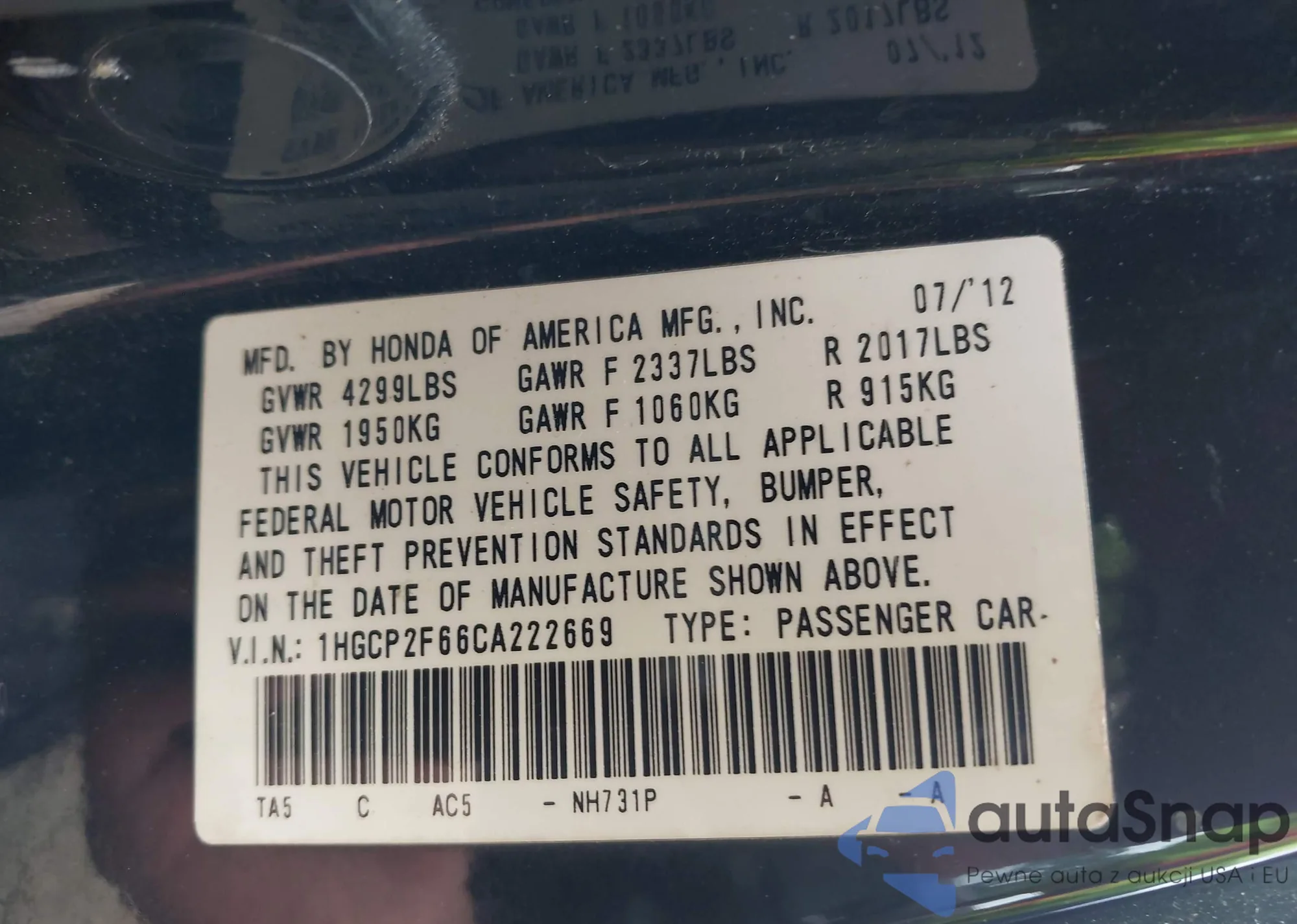 LOT: 42327632 VIN: 1HGCD5557RA111169
