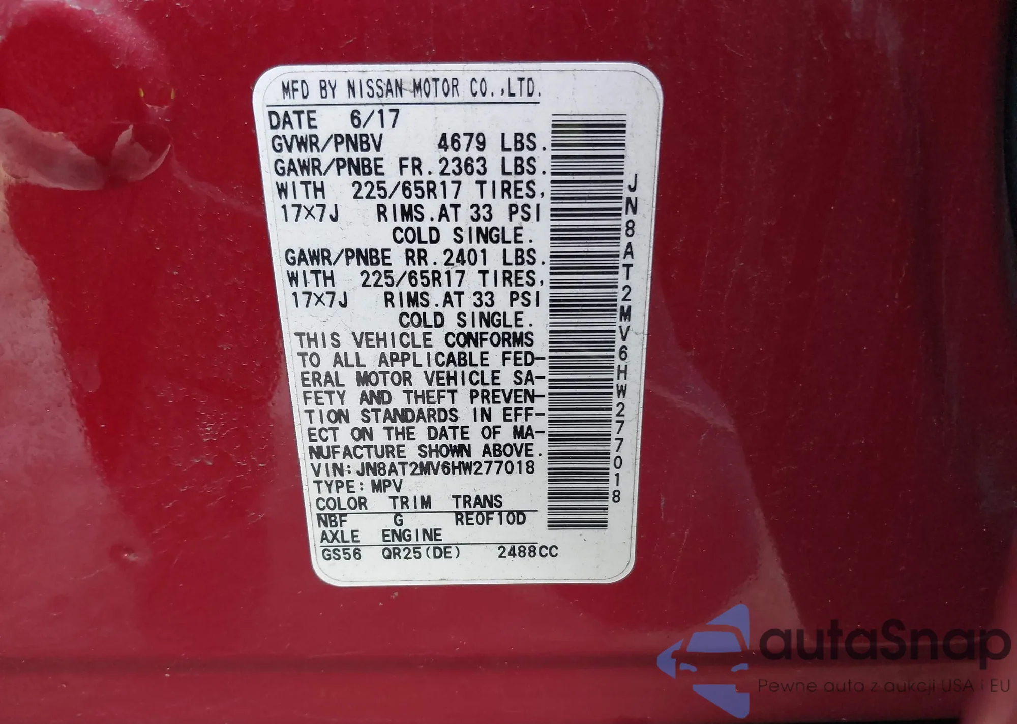 • VIN 7FARW2H57JE023171