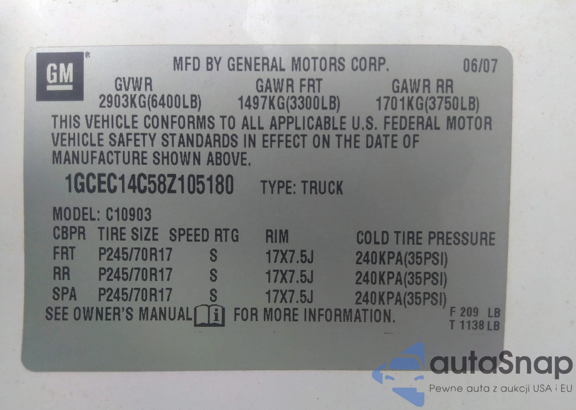 • VIN 1GCEC14C58Z105180