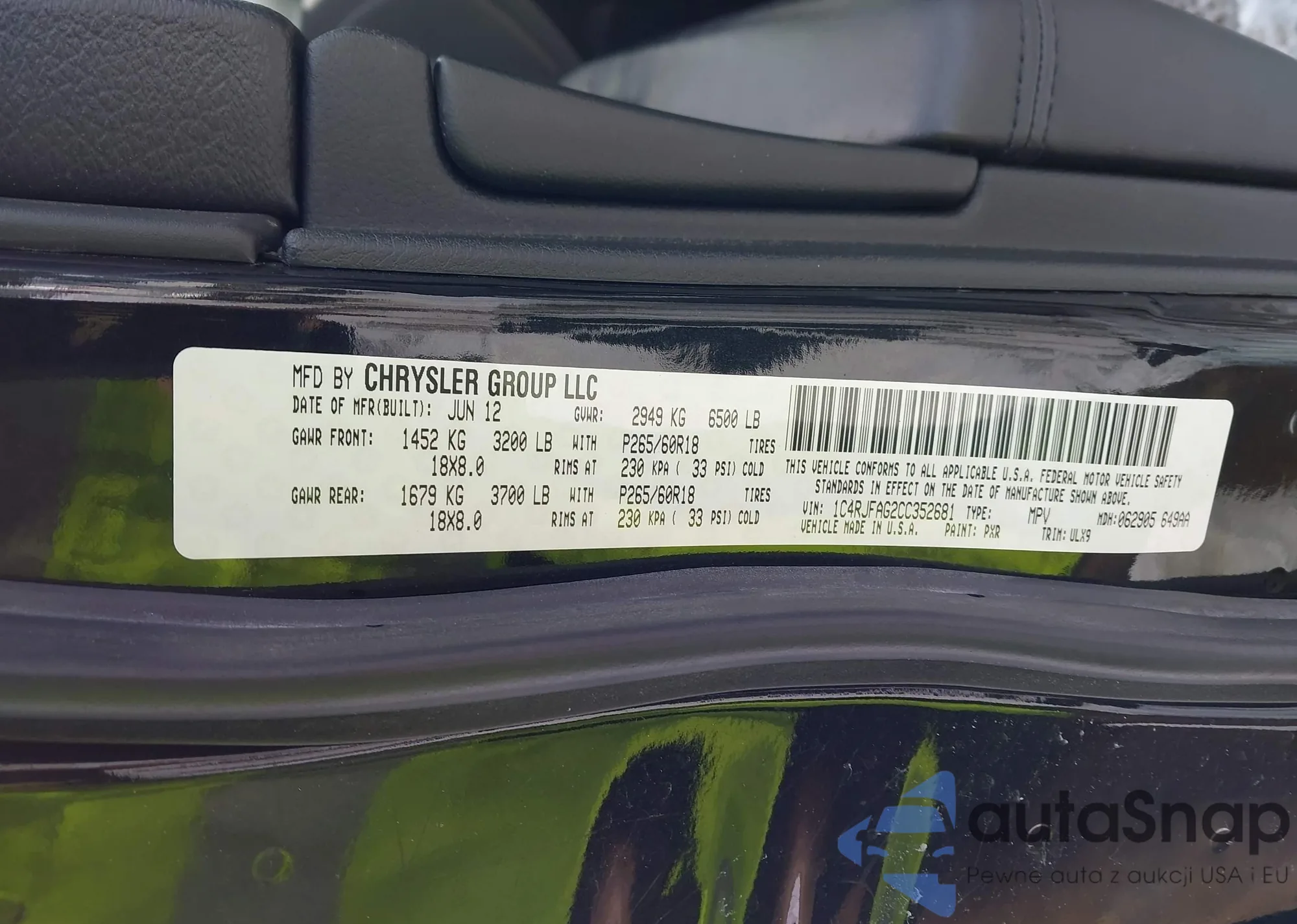 • VIN 1C4RJFAG2CC352681