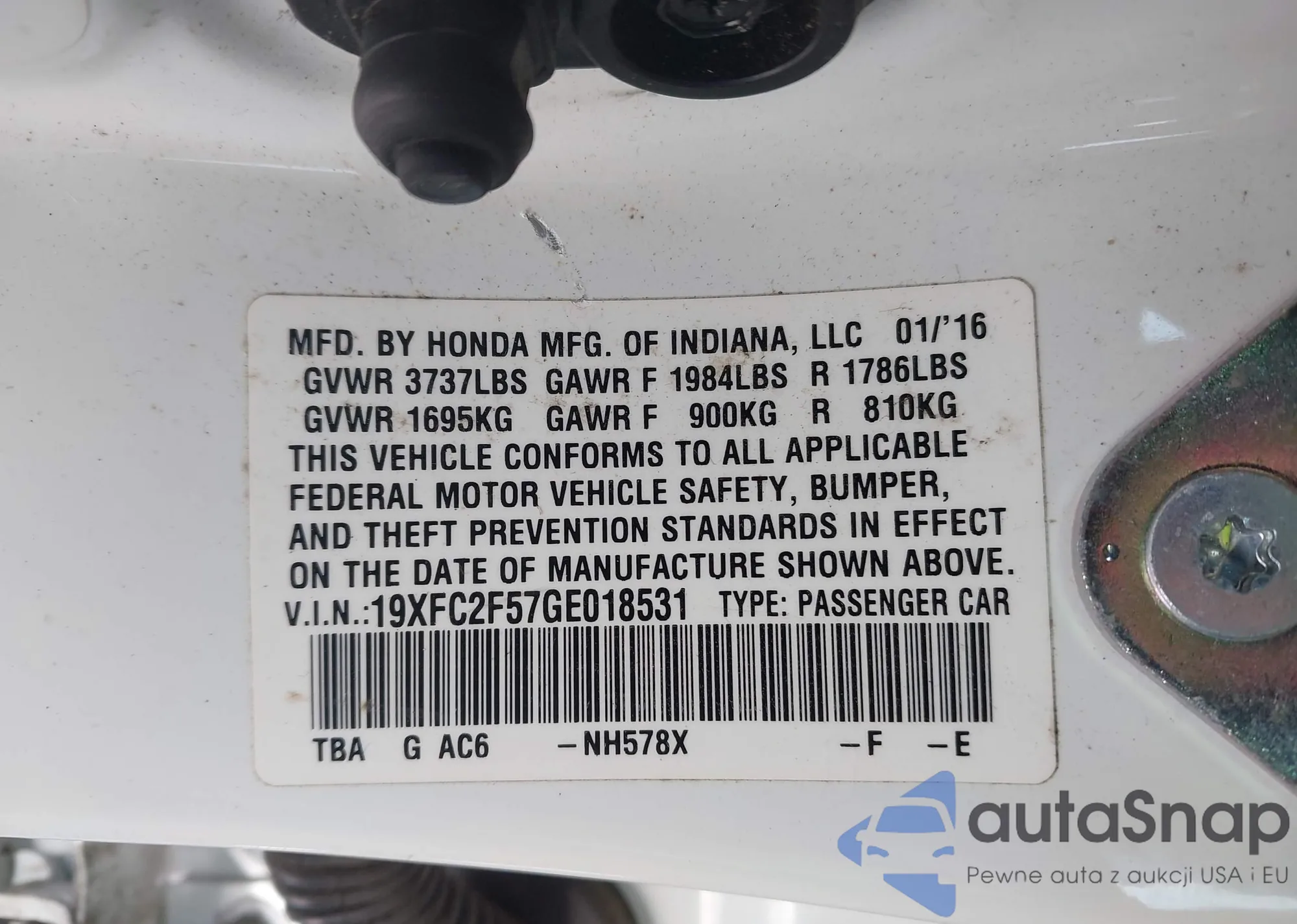 • VIN 19XFC2F57GE018531