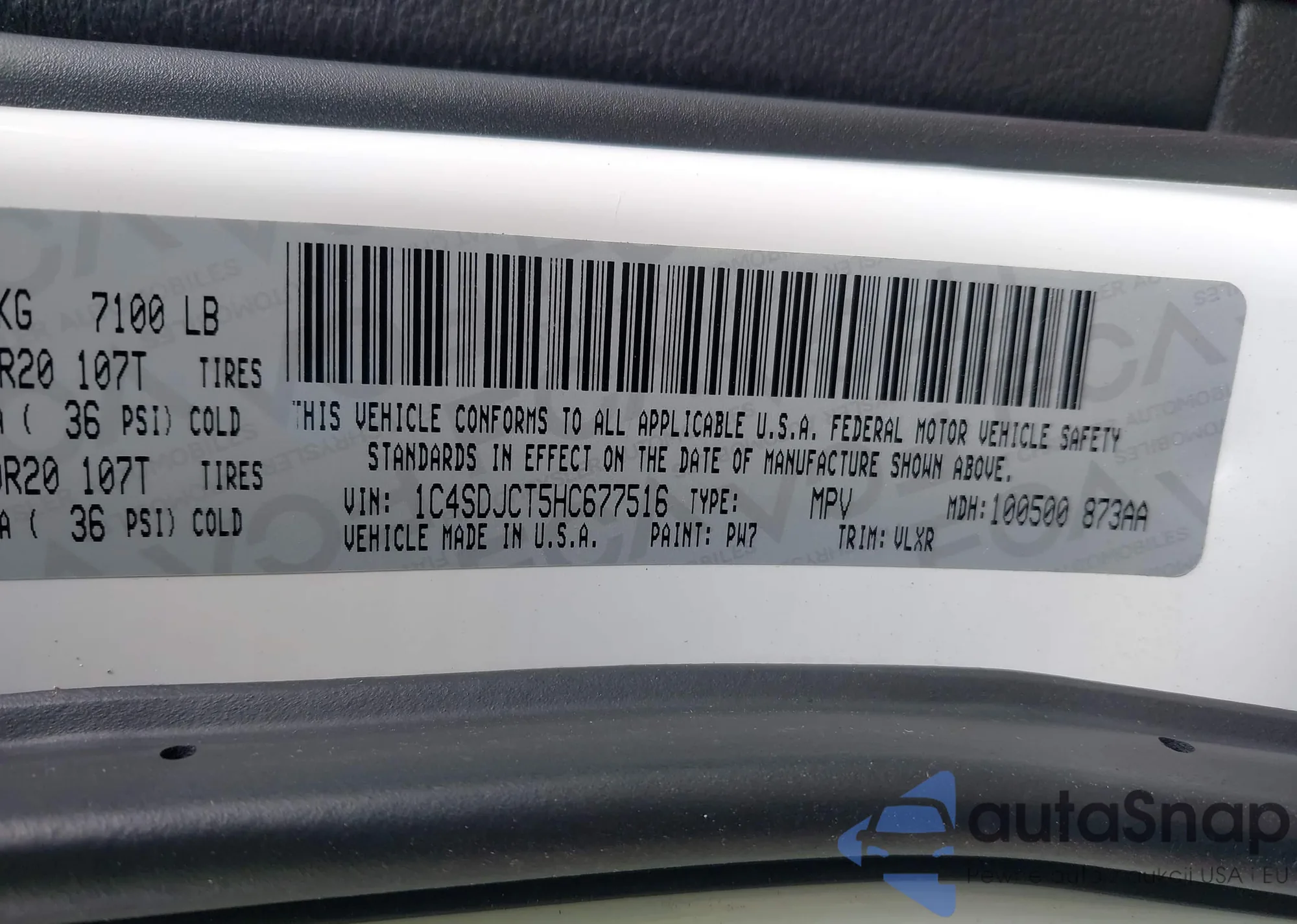 • VIN 1C4SDJCT5HC677516
