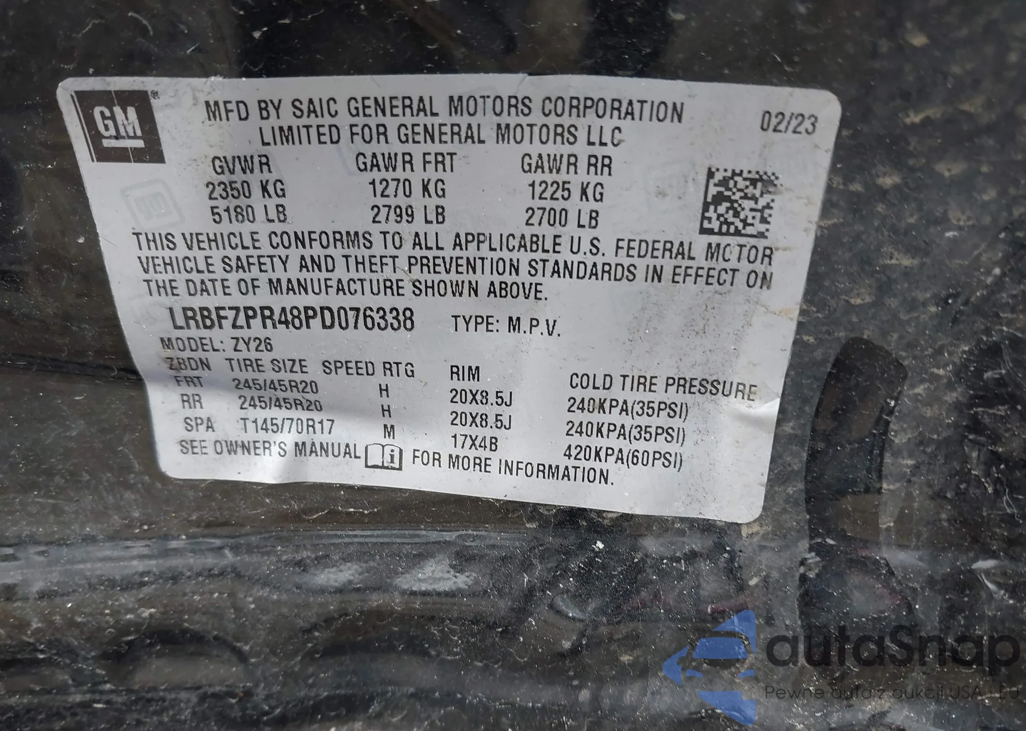 LOT: 42011071 VIN: LRBFZPR48PD076338