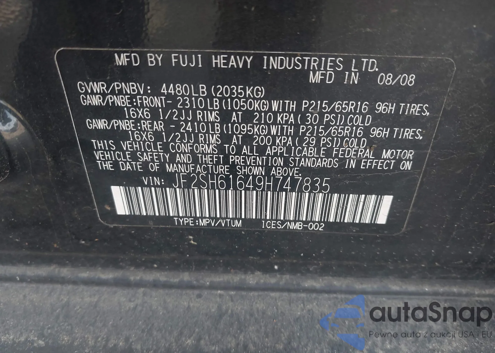 • VIN KL79MPSLXPB210502