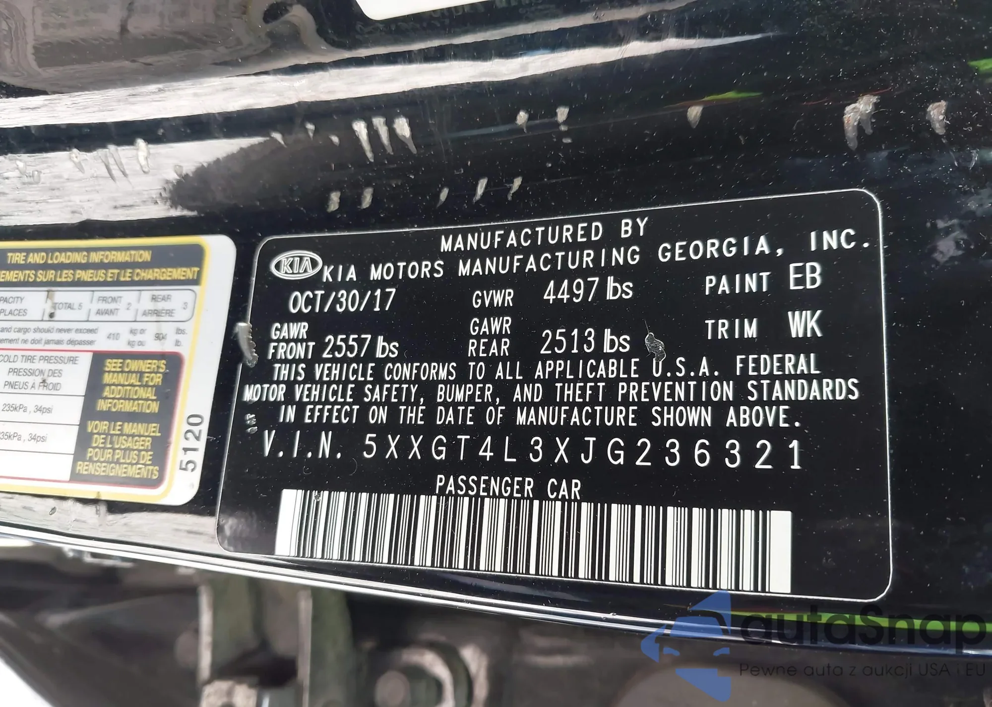 • VIN 5XXGT4L3XJG236321