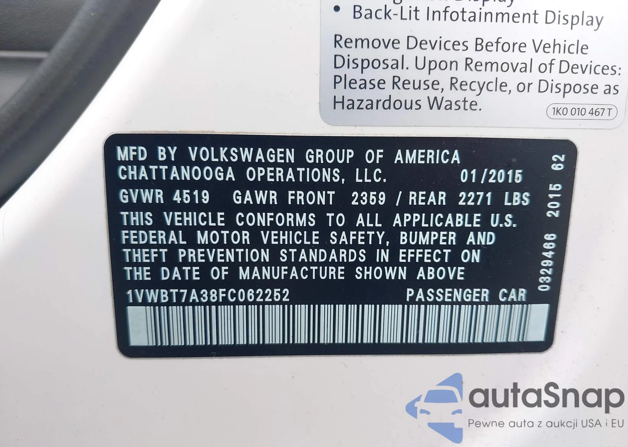 • VIN 1VWBT7A38FC062252