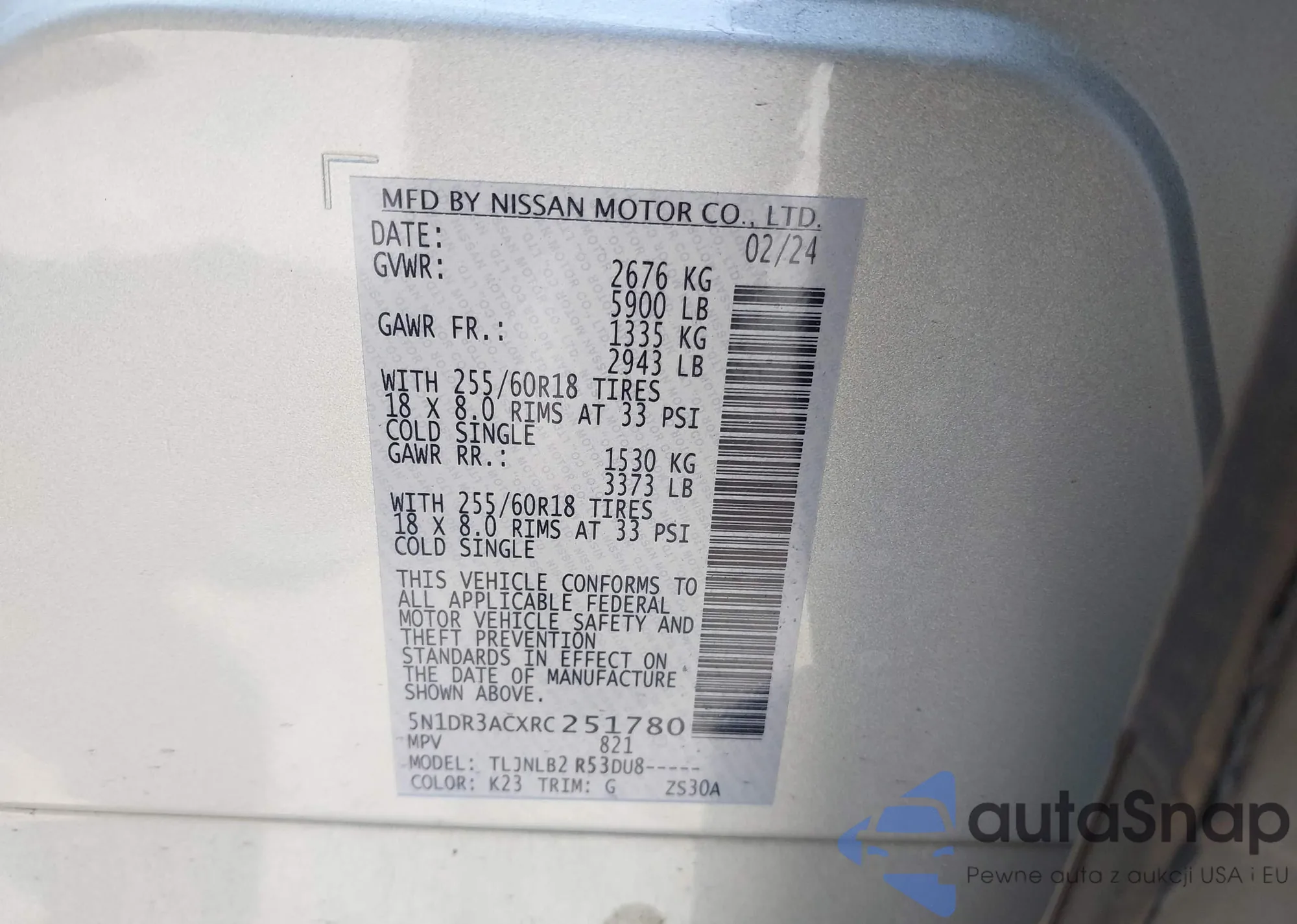 LOT: 42245940 VIN: 5N1DR3ACXRC251780