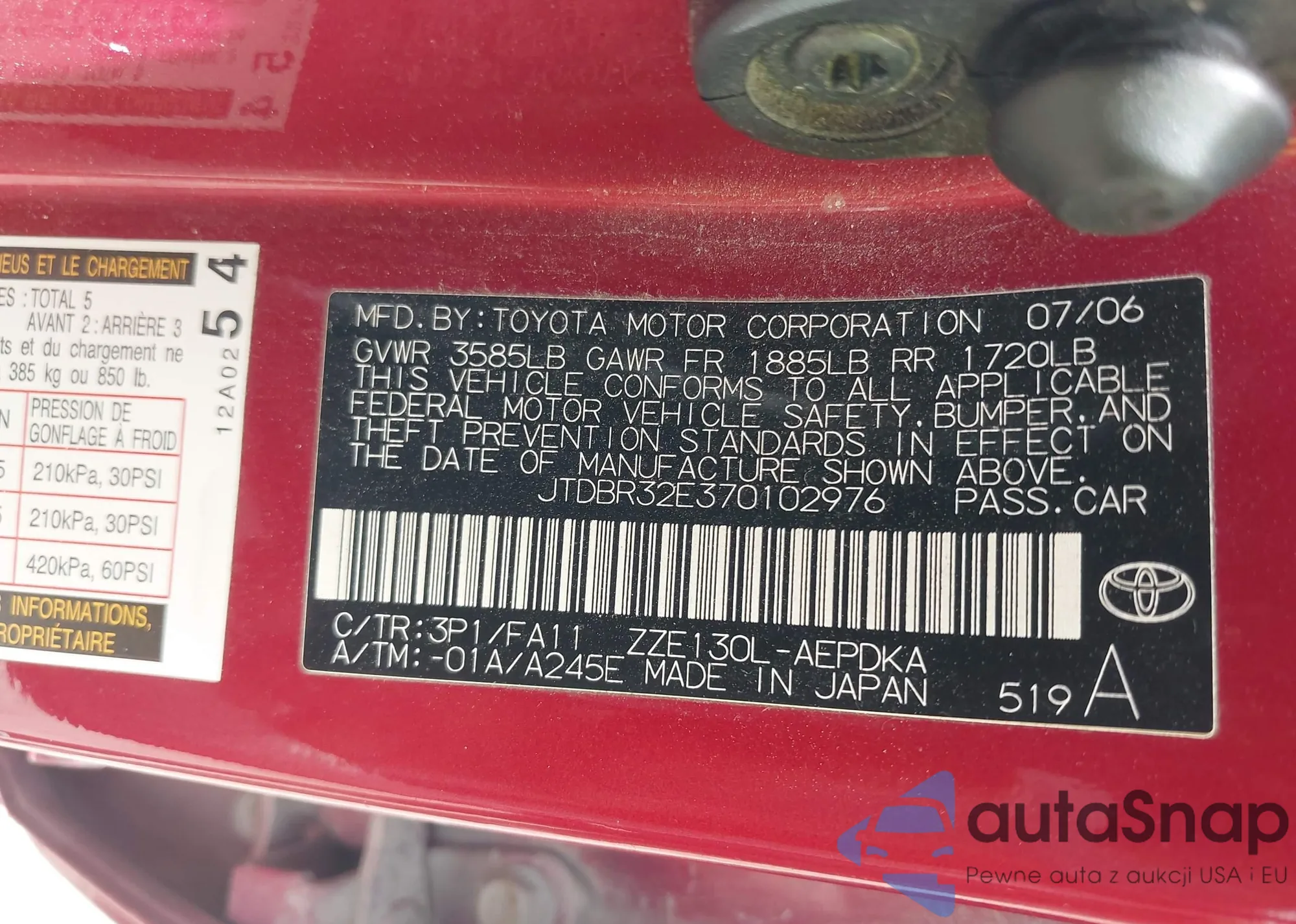 • VIN 4T1G11AKXNU686447
