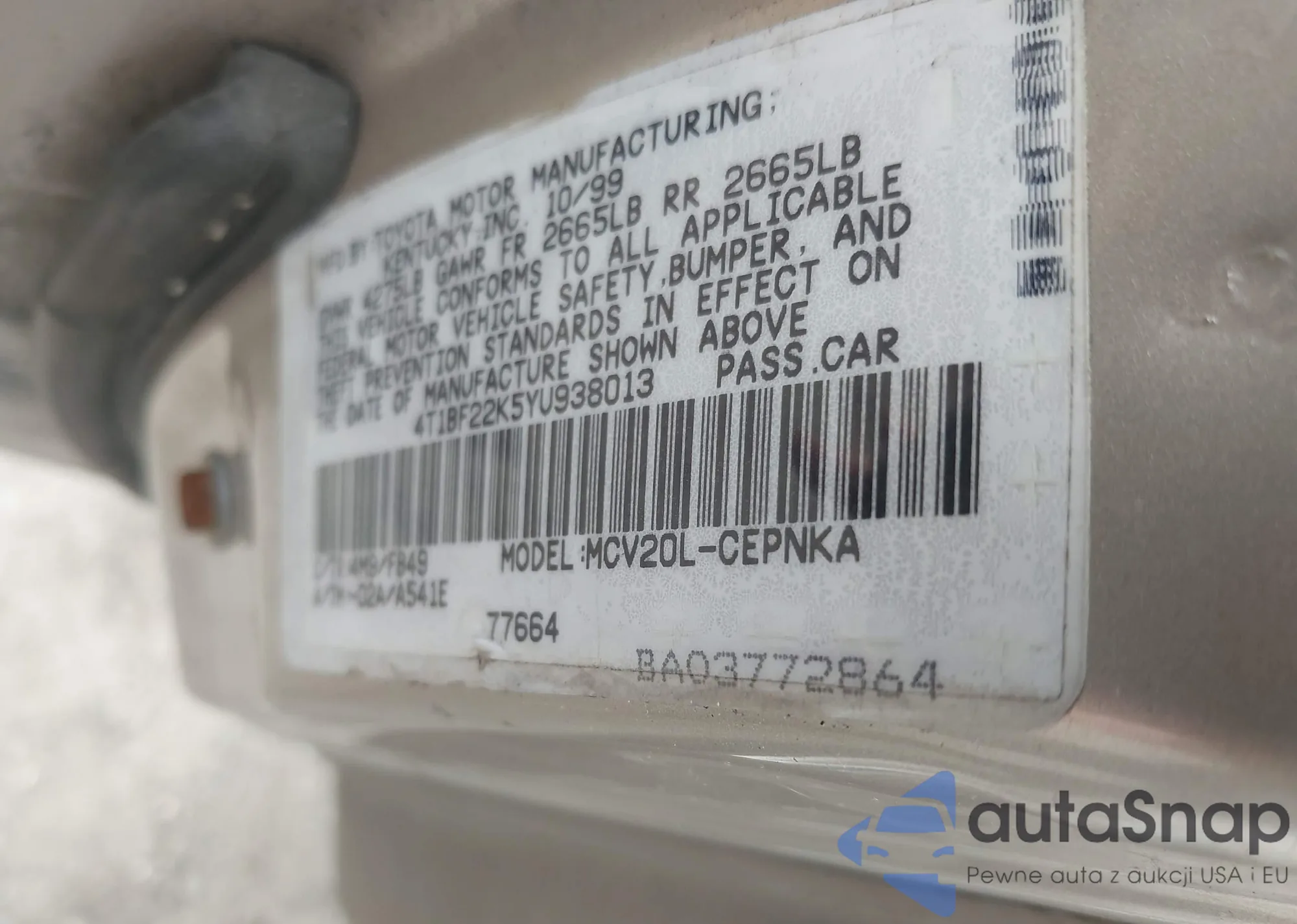 LOT: 41908575 VIN: 4T1G11AKXNU686447