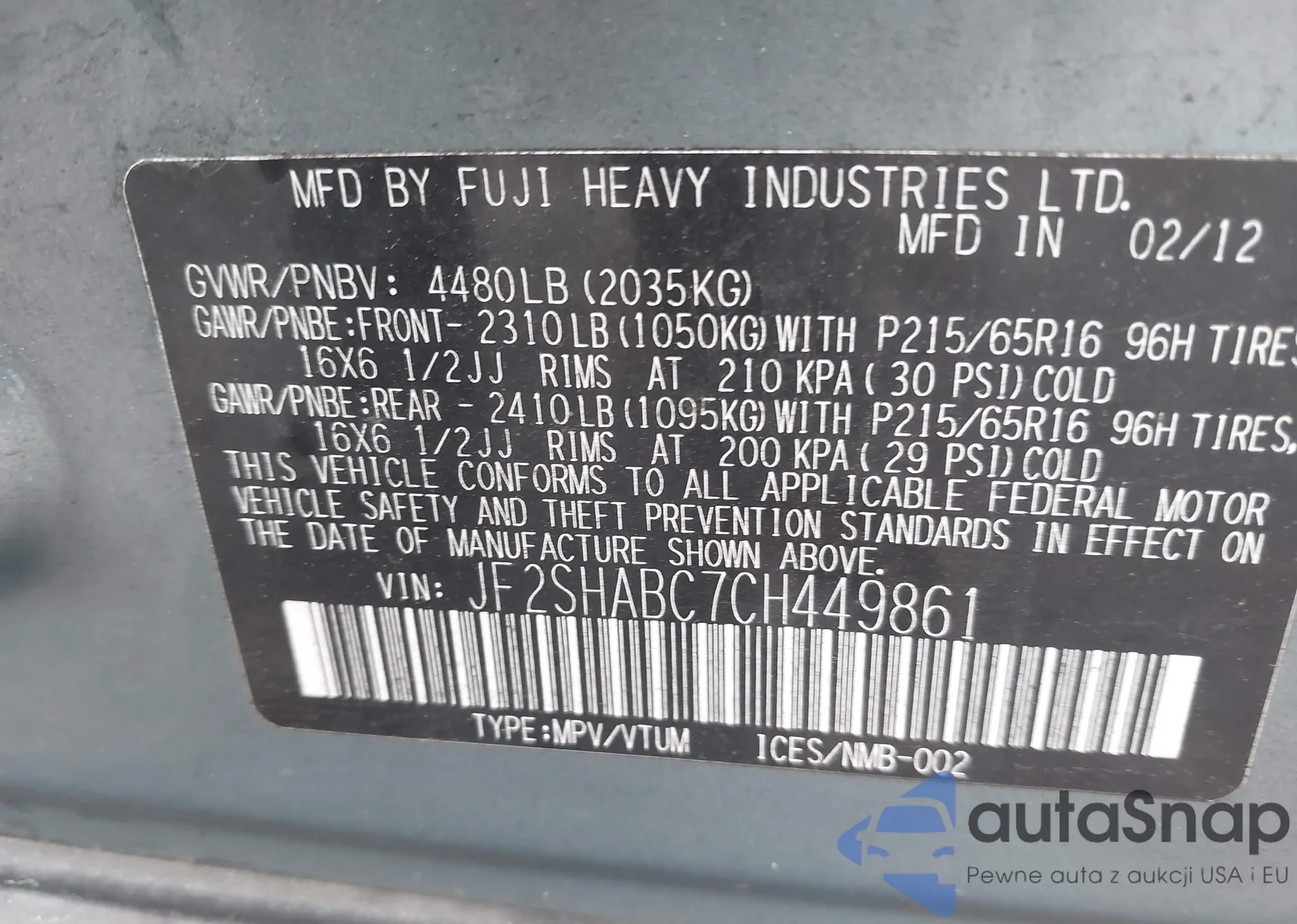 LOT: 42470532 VIN: JF1GH6A63AH808638