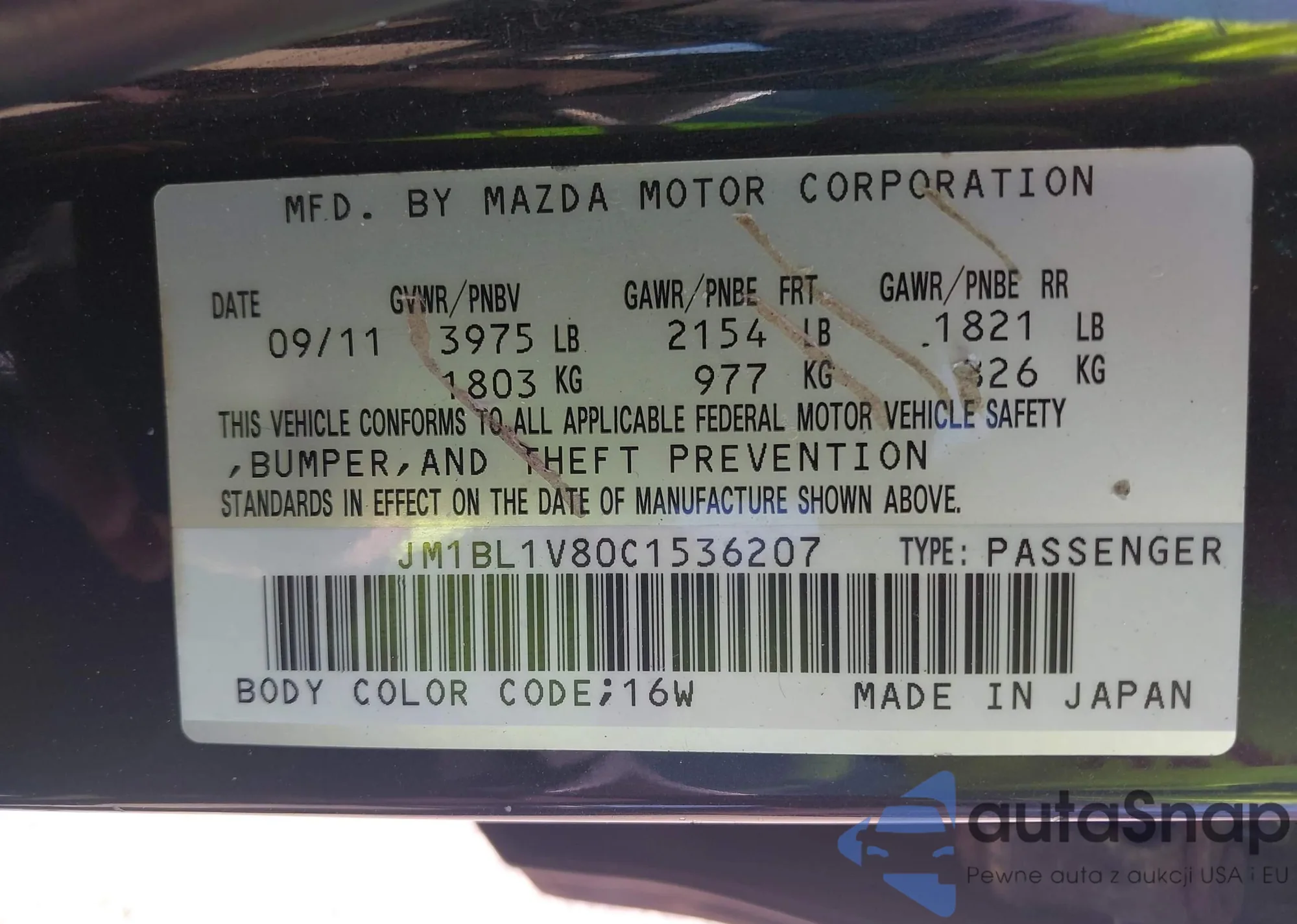 LOT: 42495212 VIN: JM1BL1V80C1536207