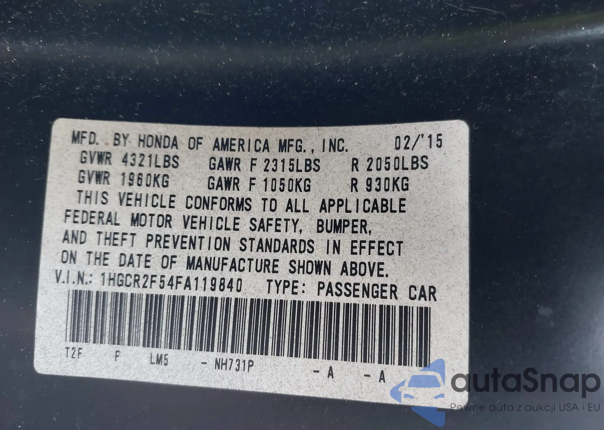 • VIN 5FPYK3F13JB004309