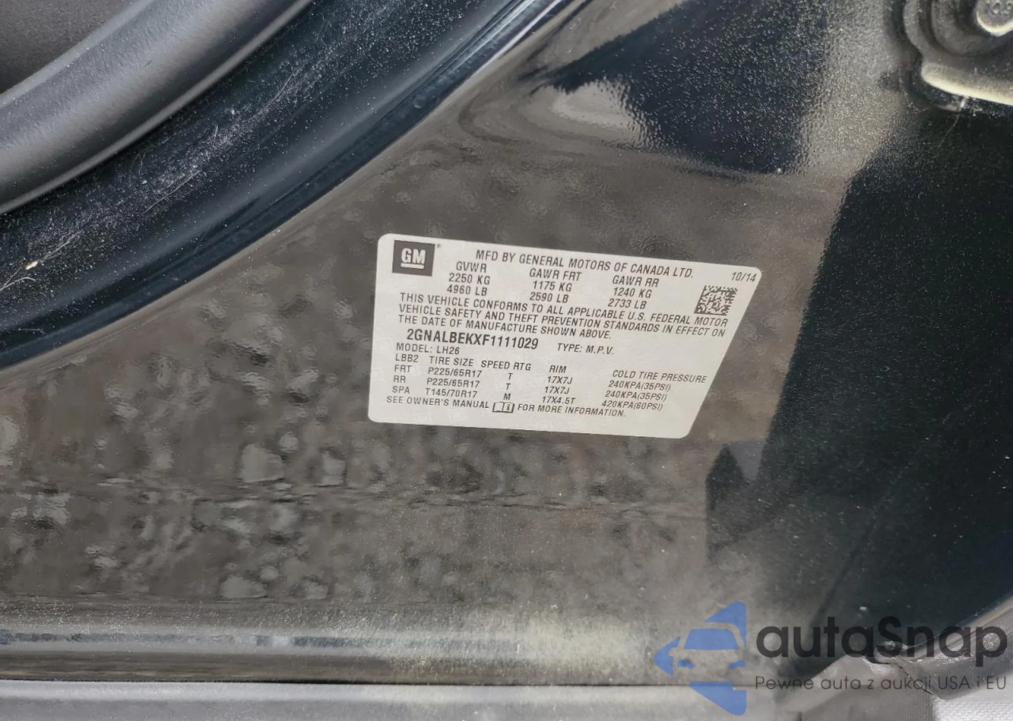 LOT: 61055315 VIN: JF1GJAC64DH010559
