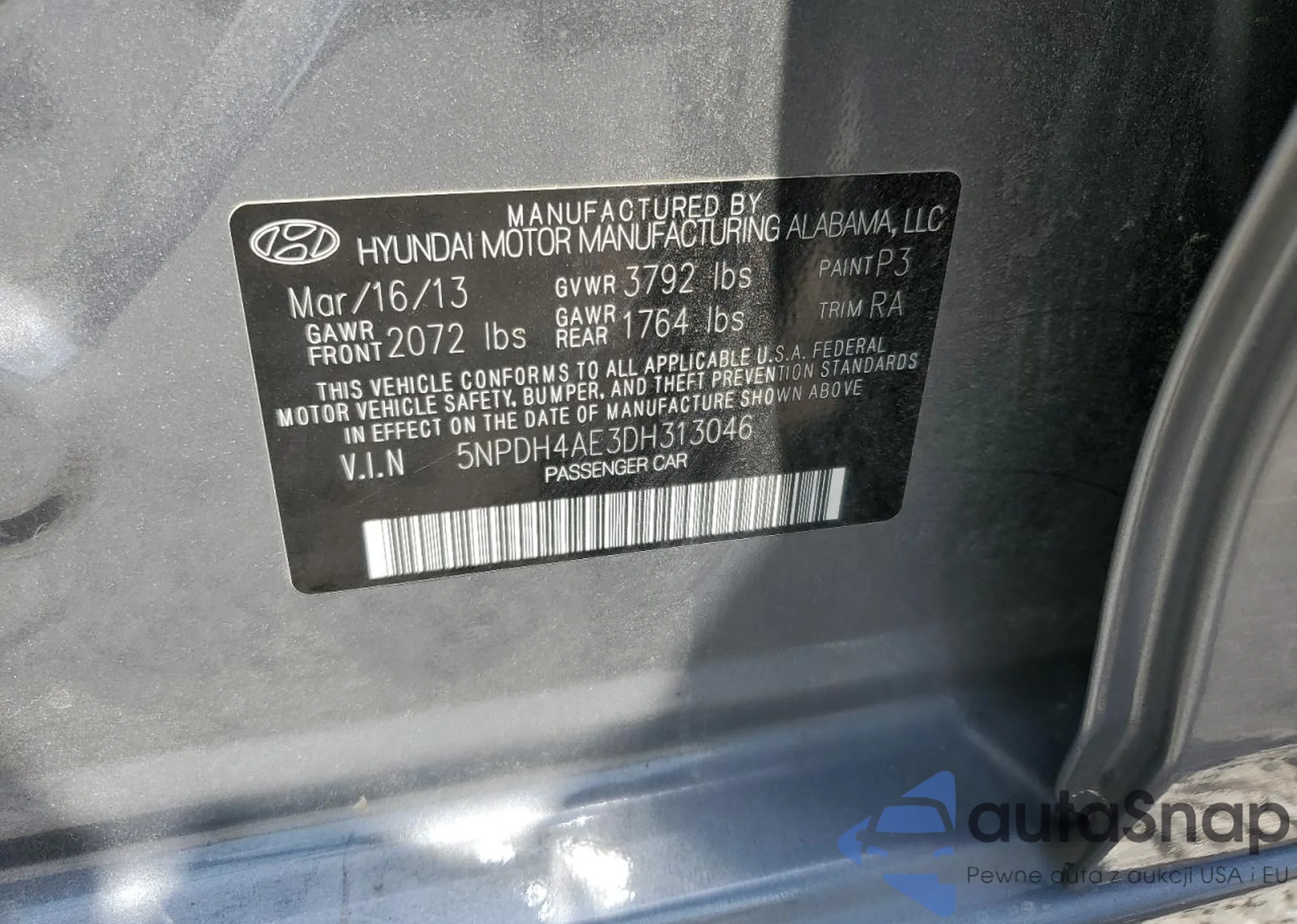 LOT: 55253705 VIN: 5NPDH4AE3DH313046