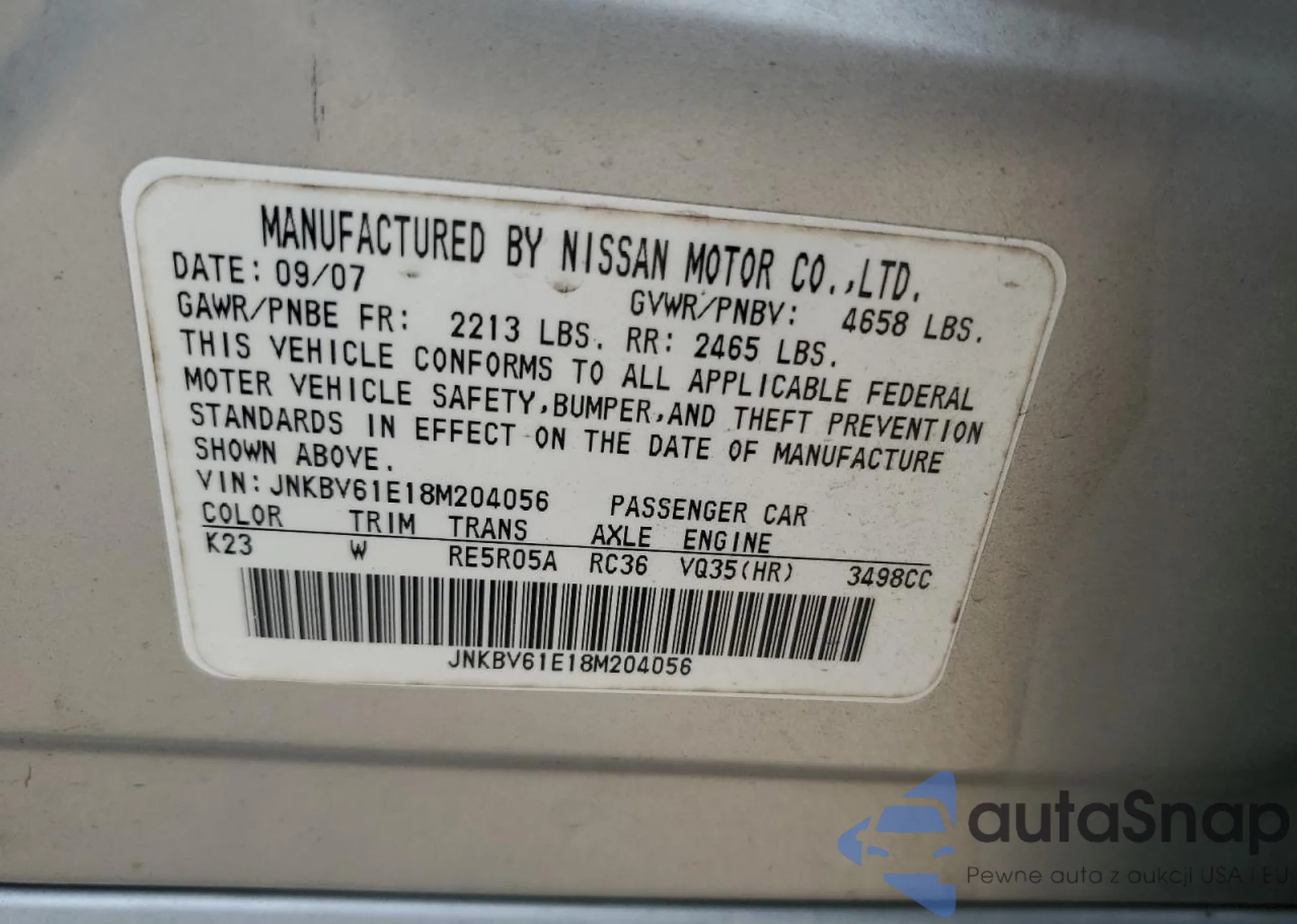 LOT: 59567805 VIN: JNKBV61E18M204056