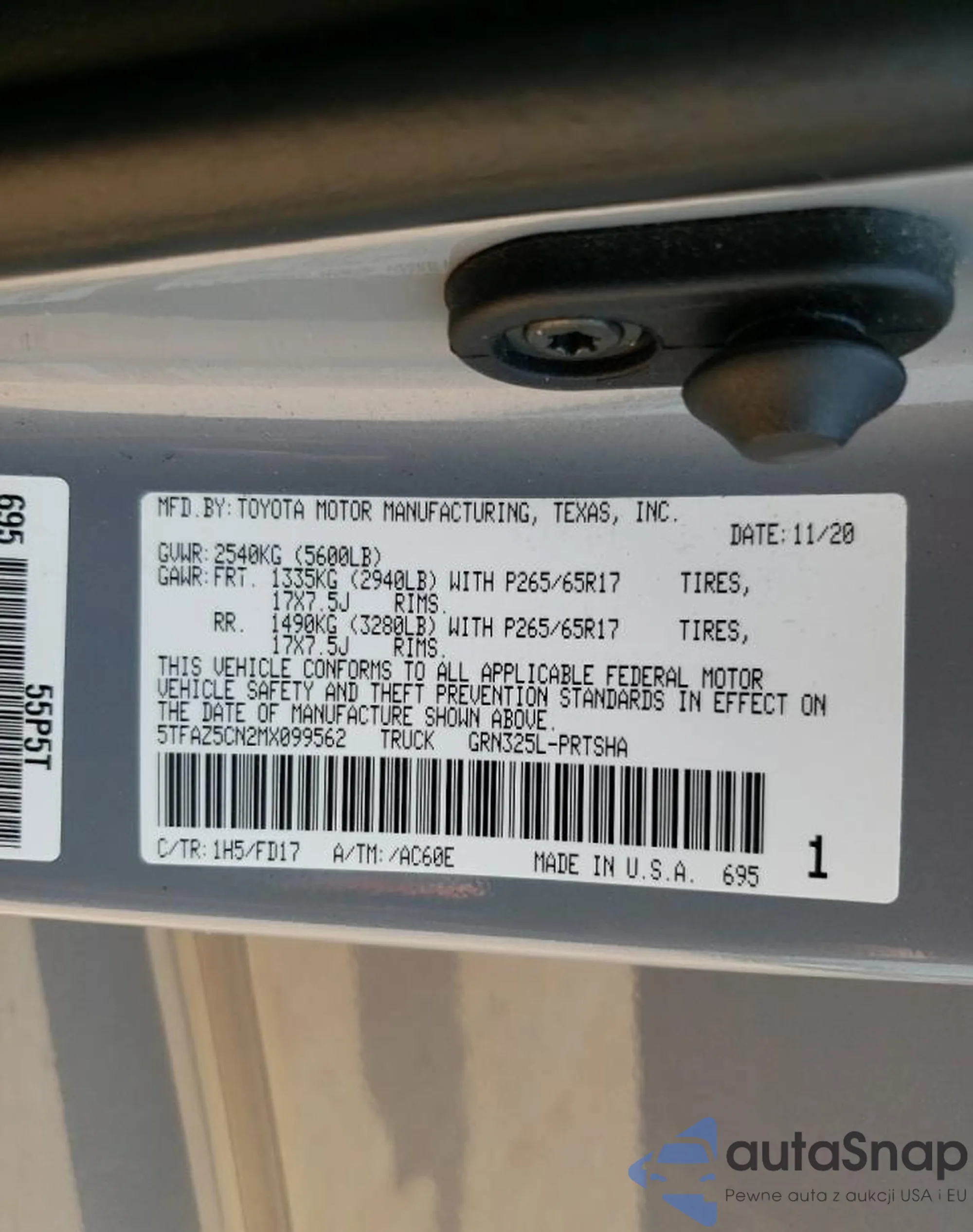 LOT: 59329335 VIN: 5TFAZ5CN2MX099562