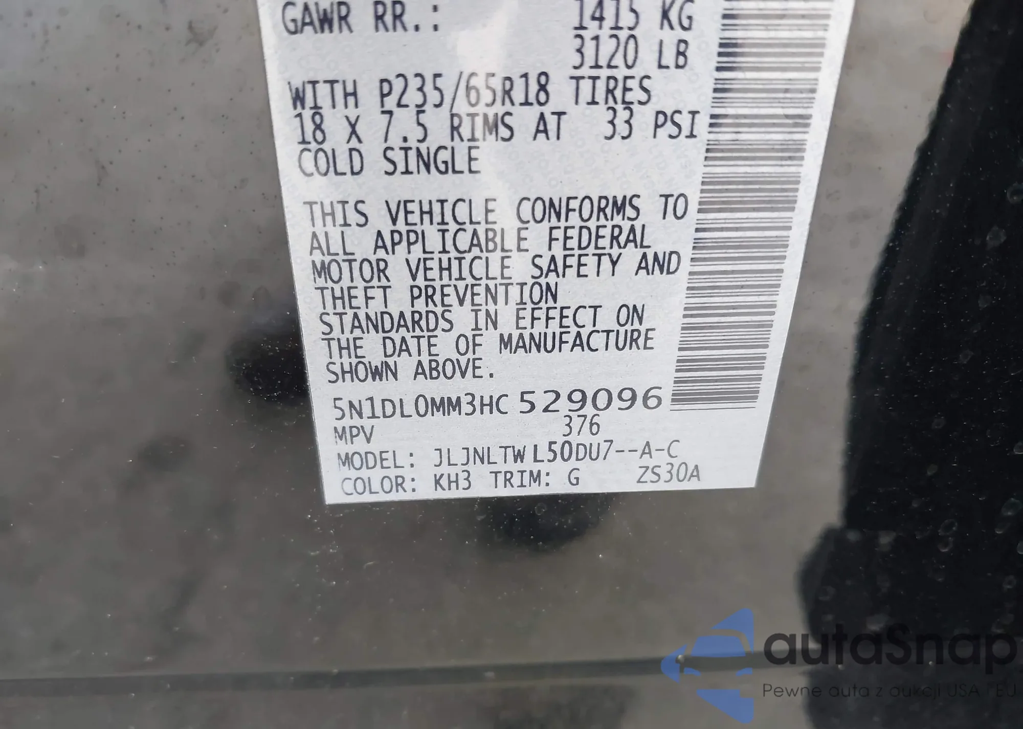 • VIN 5N1DL0MM3HC529096