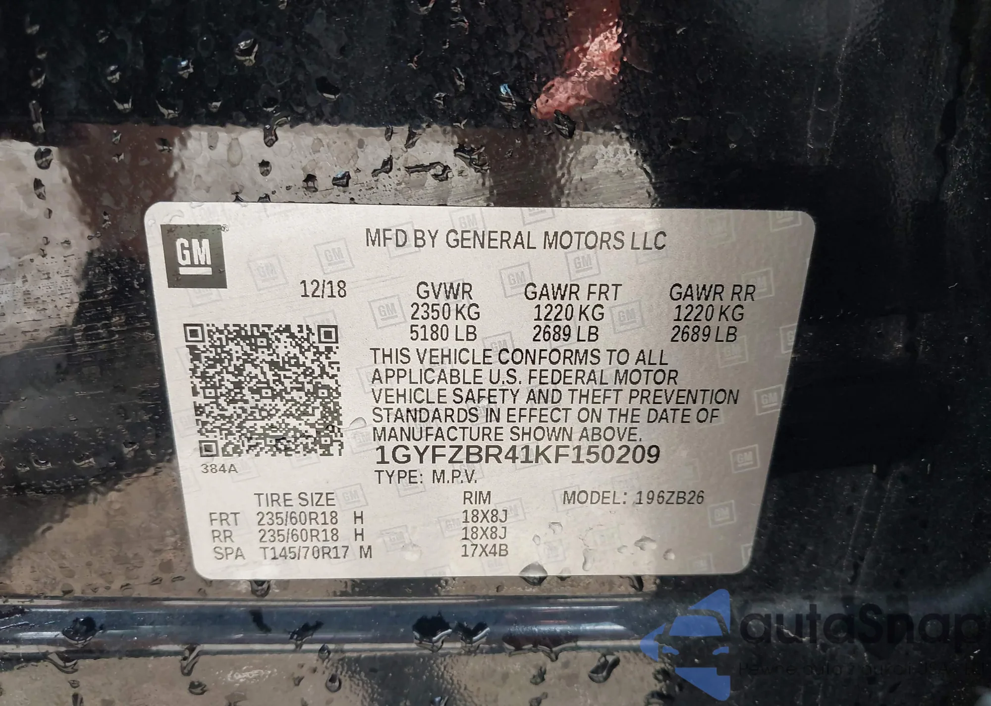 • VIN 1GYFZBR41KF150209