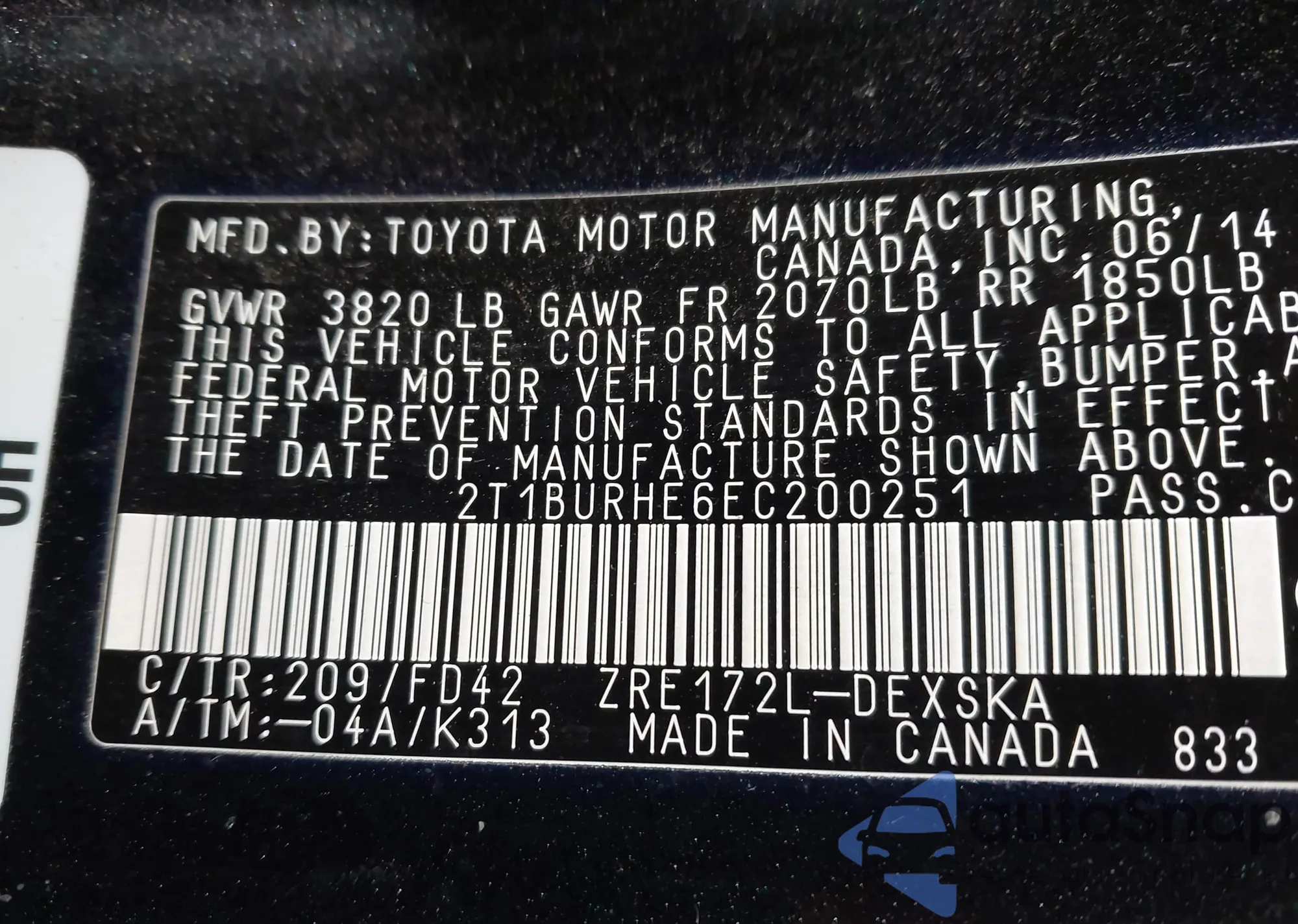 • VIN 4T1BF1FKXFU947775