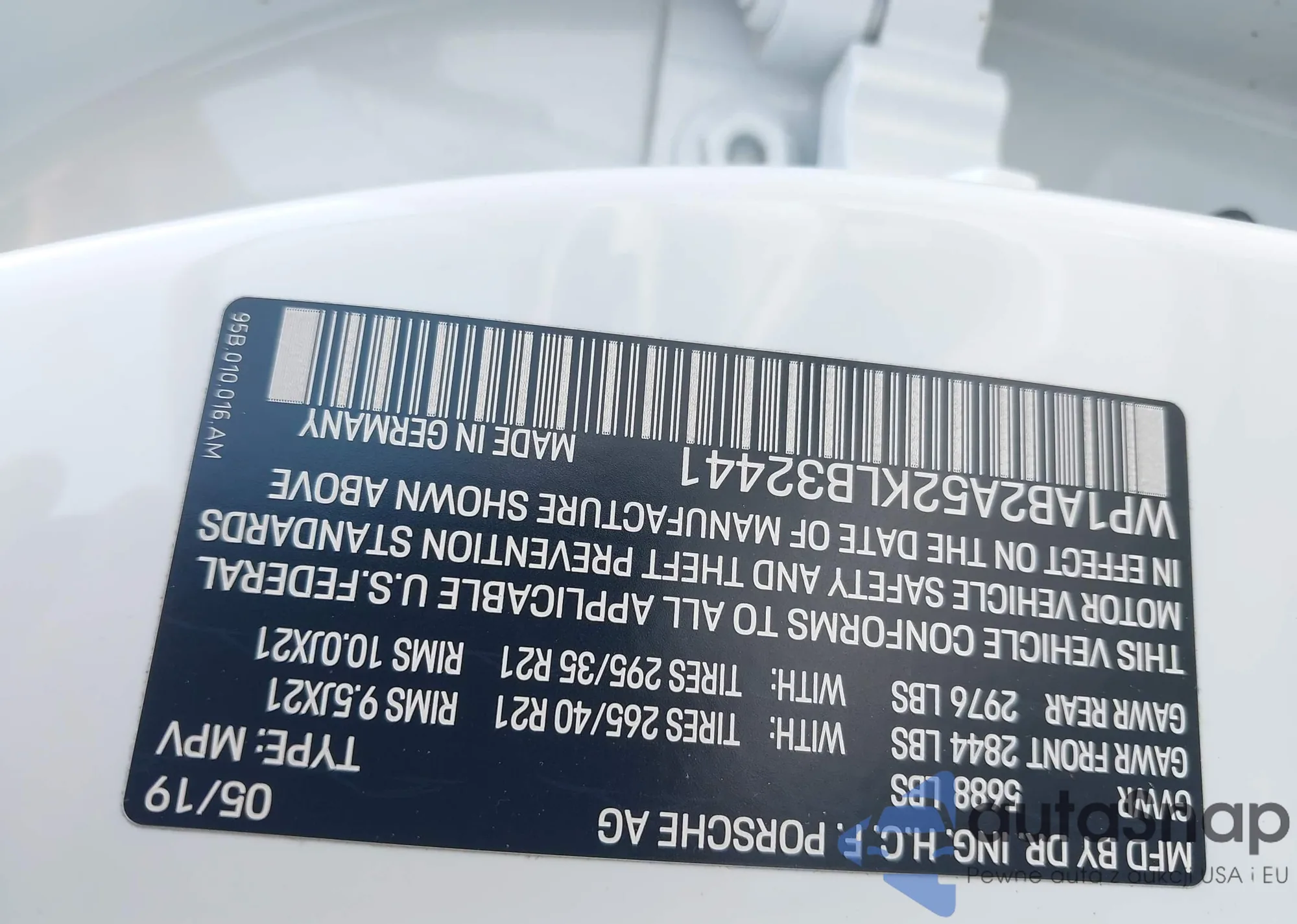 LOT: 42388548 VIN: WP1AB2A52KLB32441