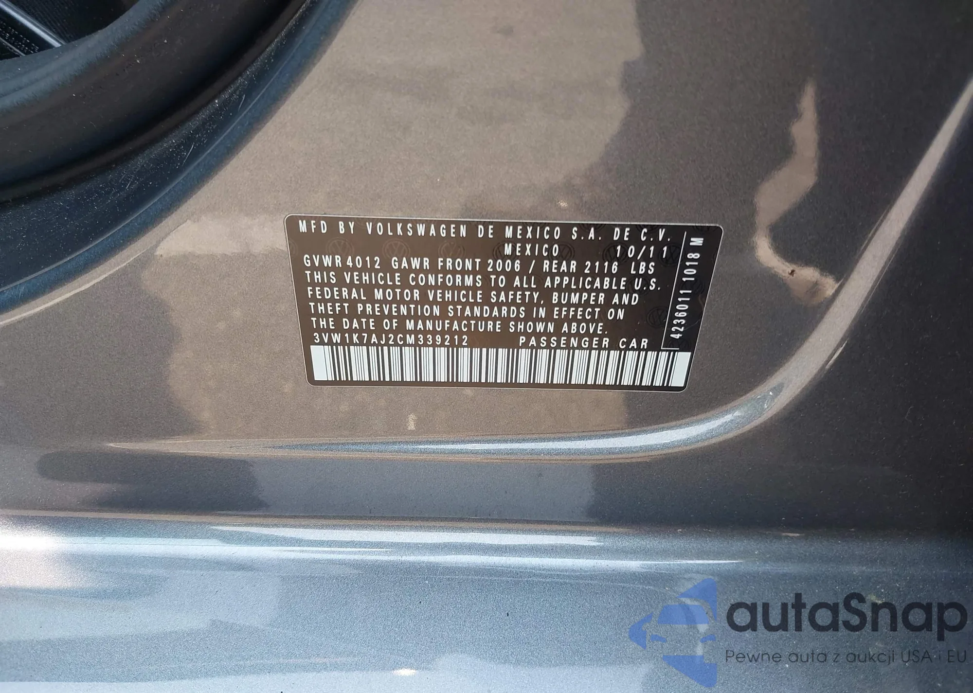 • VIN 3VW1K7AJ2CM339212
