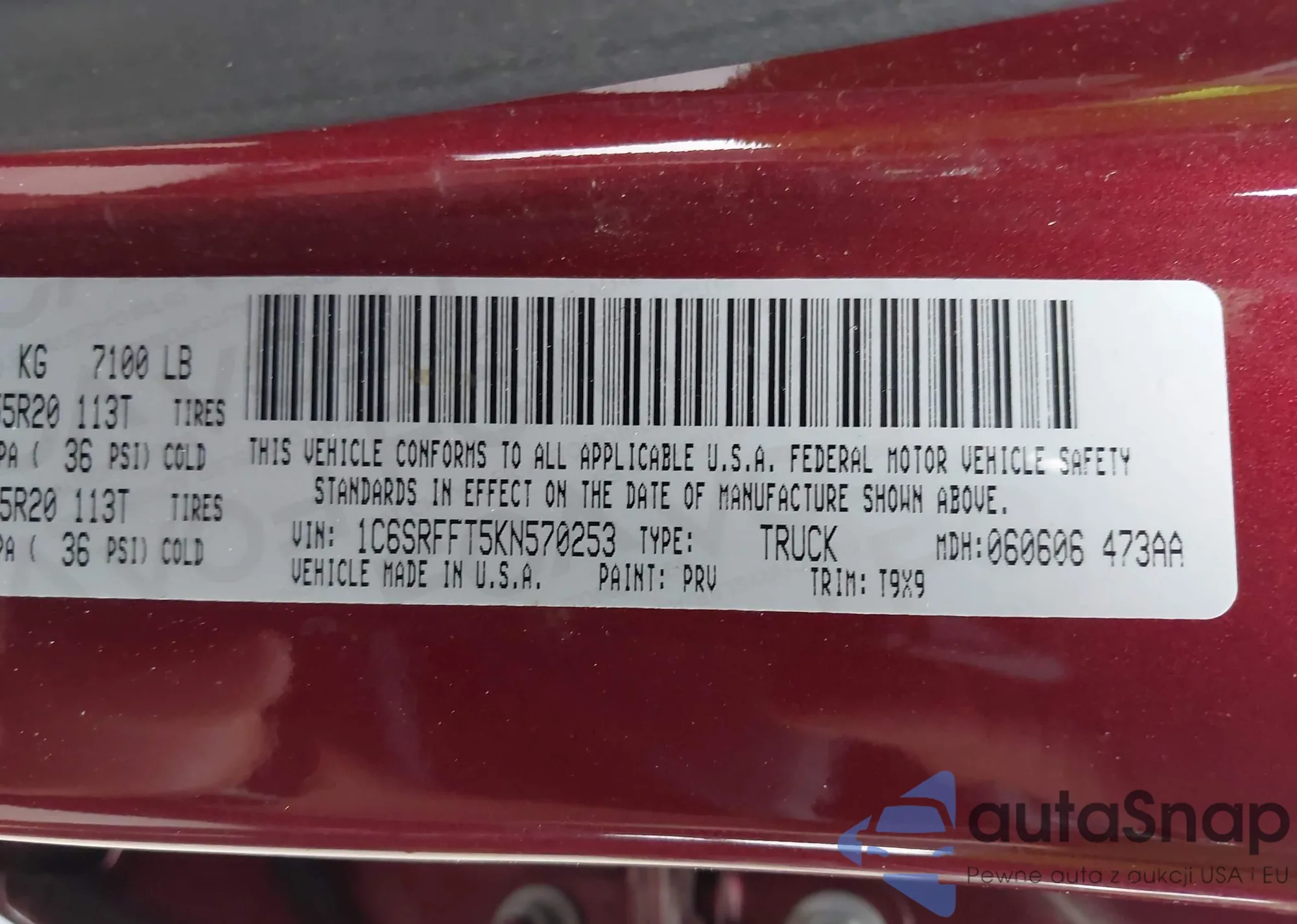 • VIN 1C6RD7MT8CS267282