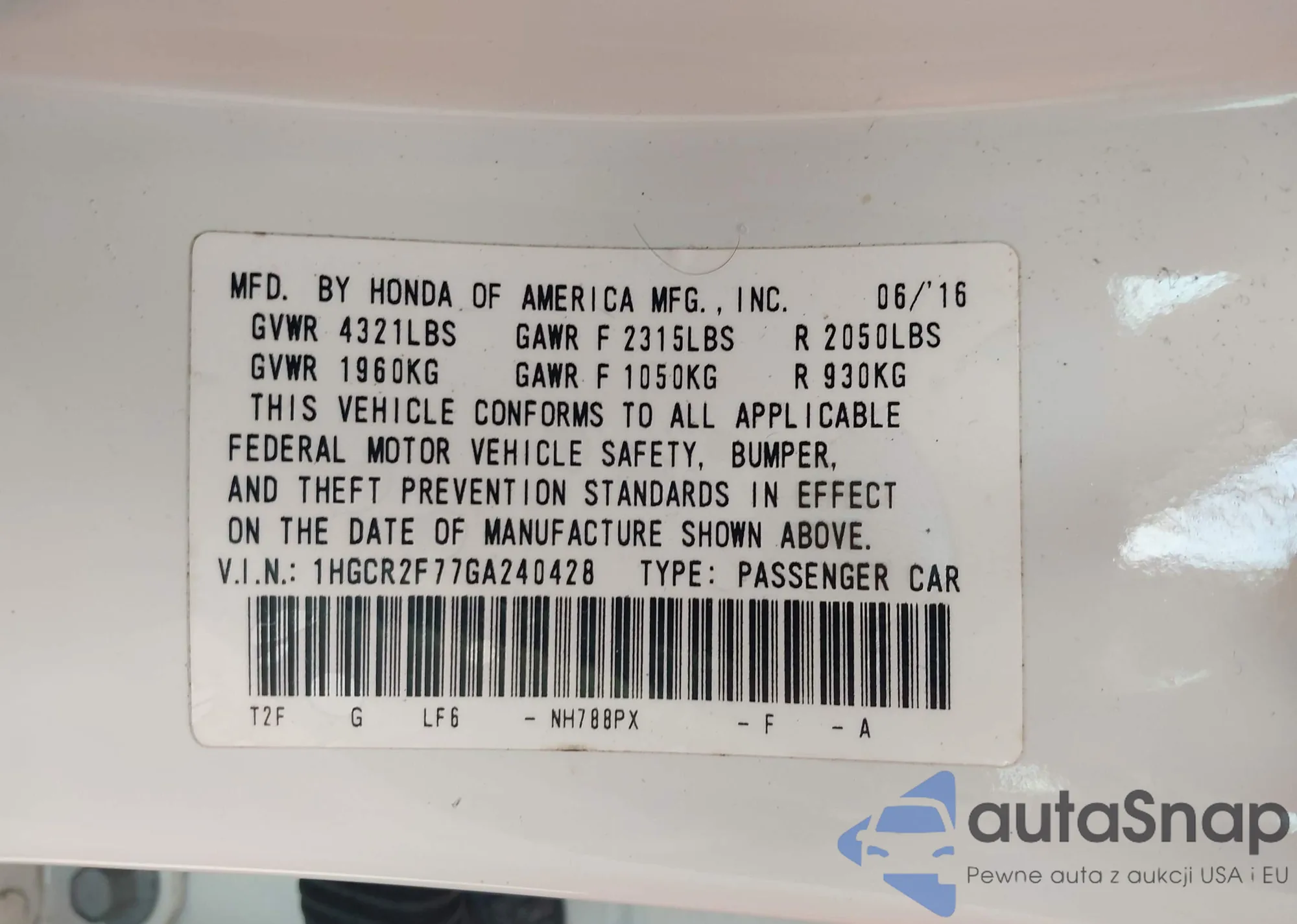 • VIN 1HGCR2F77GA240428