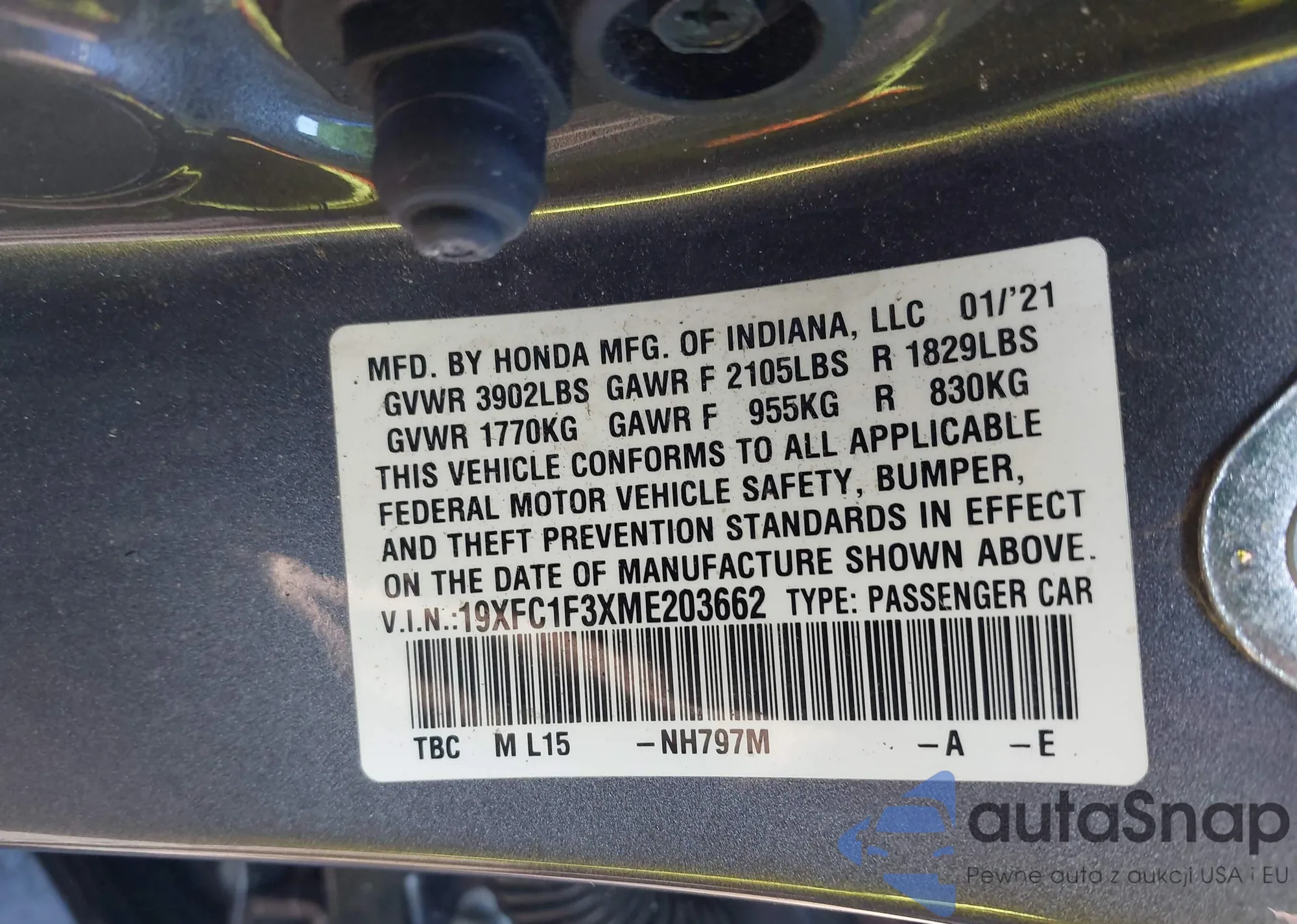 • VIN 19XFC1F3XME203662