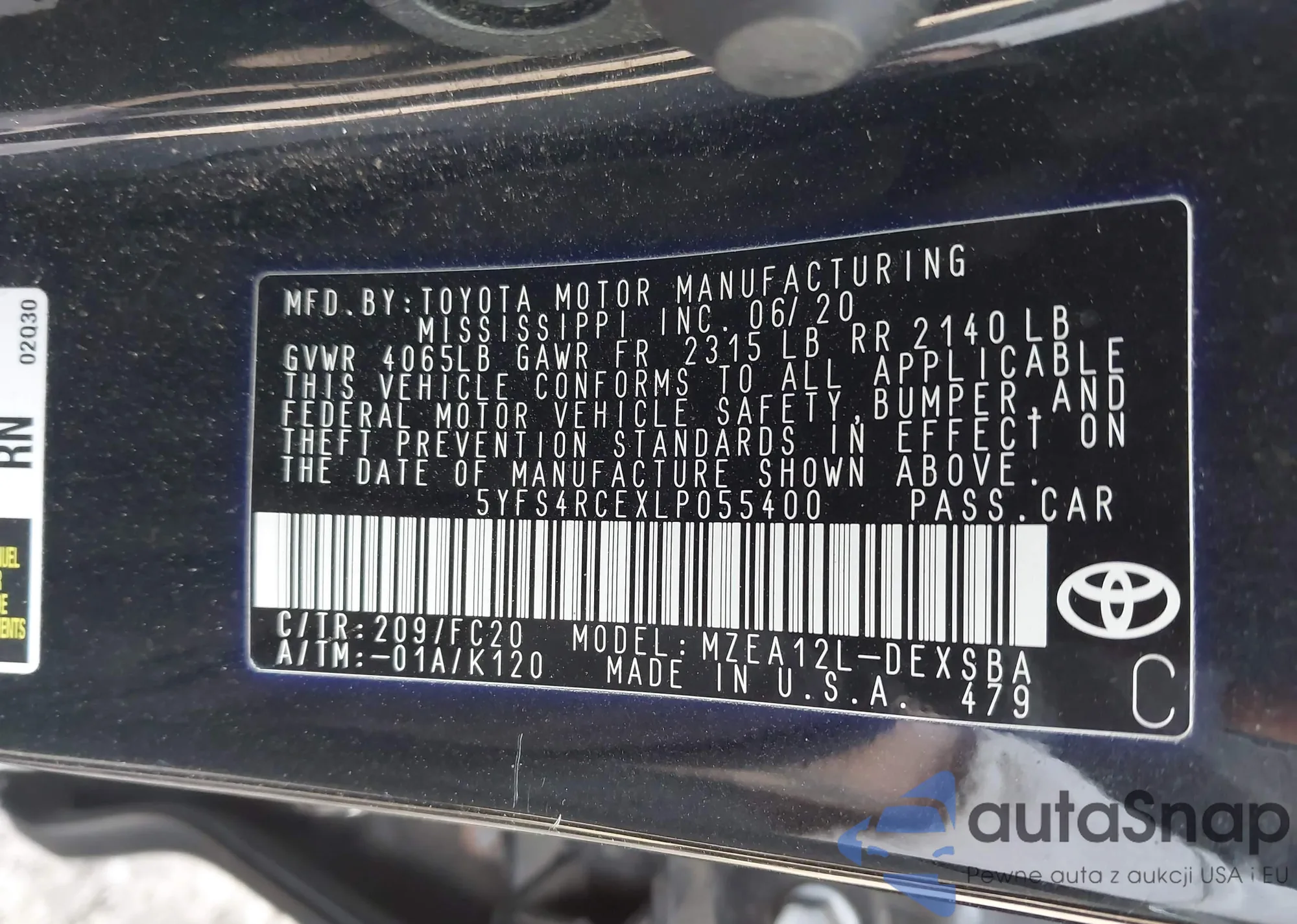 • VIN 5YFS4RCEXLP055400