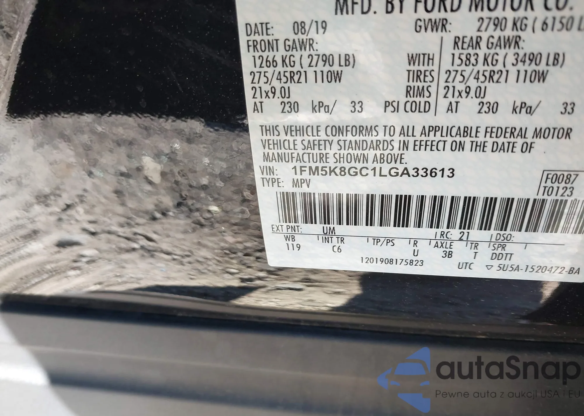 LOT: 41934276 VIN: 1FM5K8D8XKGA74899