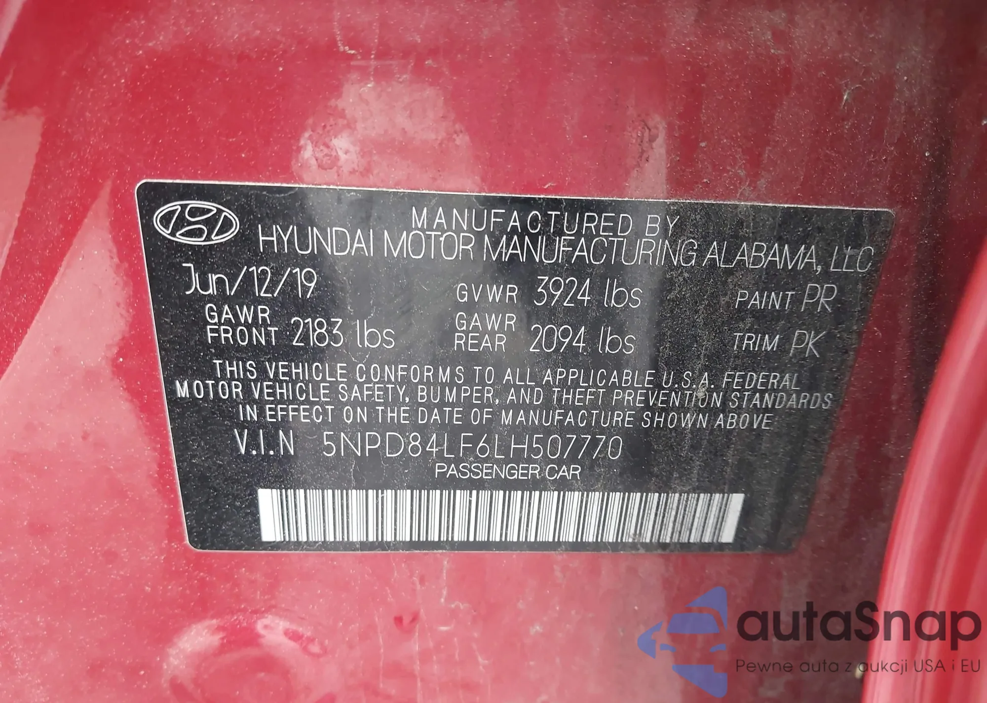 • VIN 5NPD84LF6LH507770
