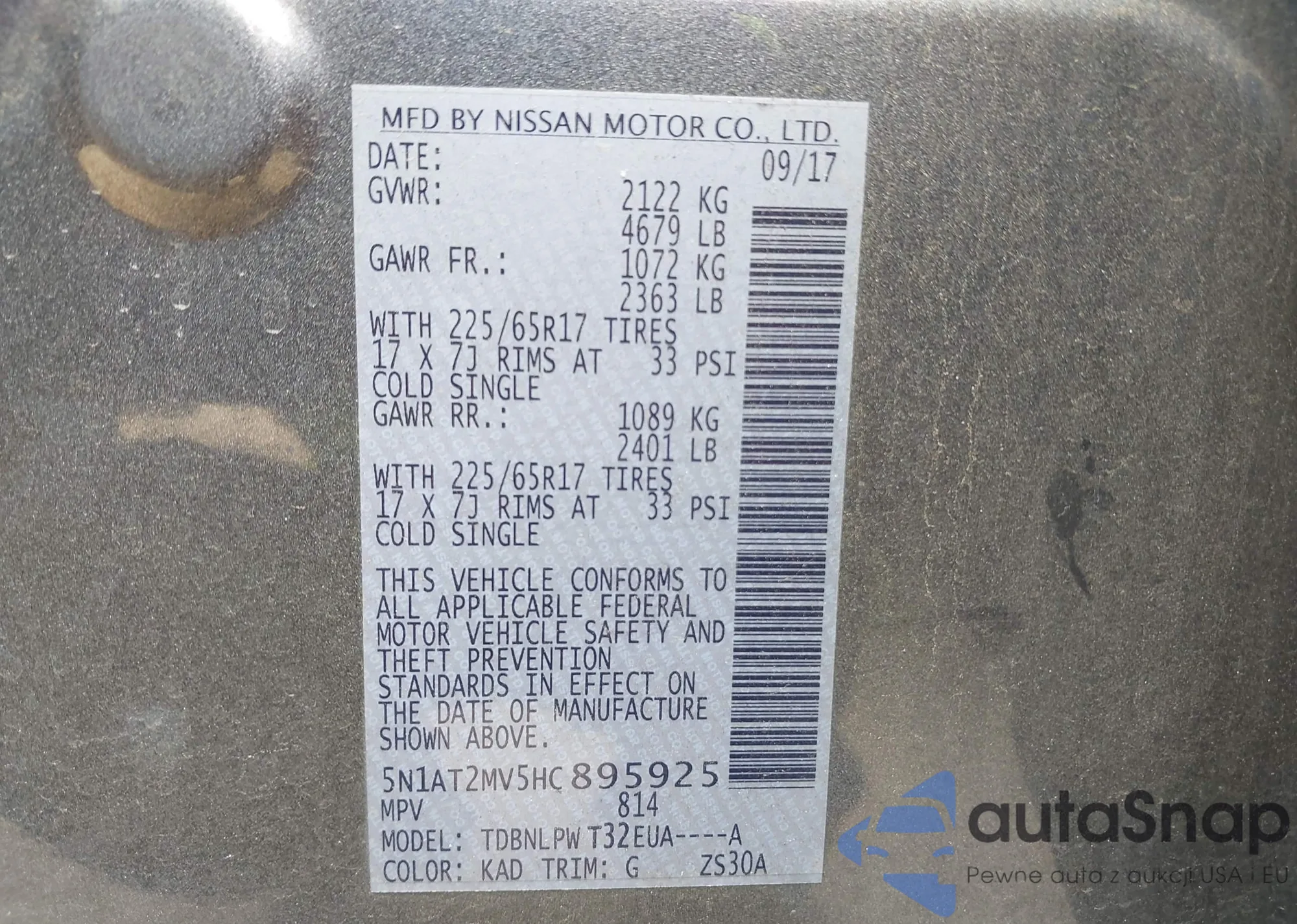 • VIN 5N1AT2MV5HC895925