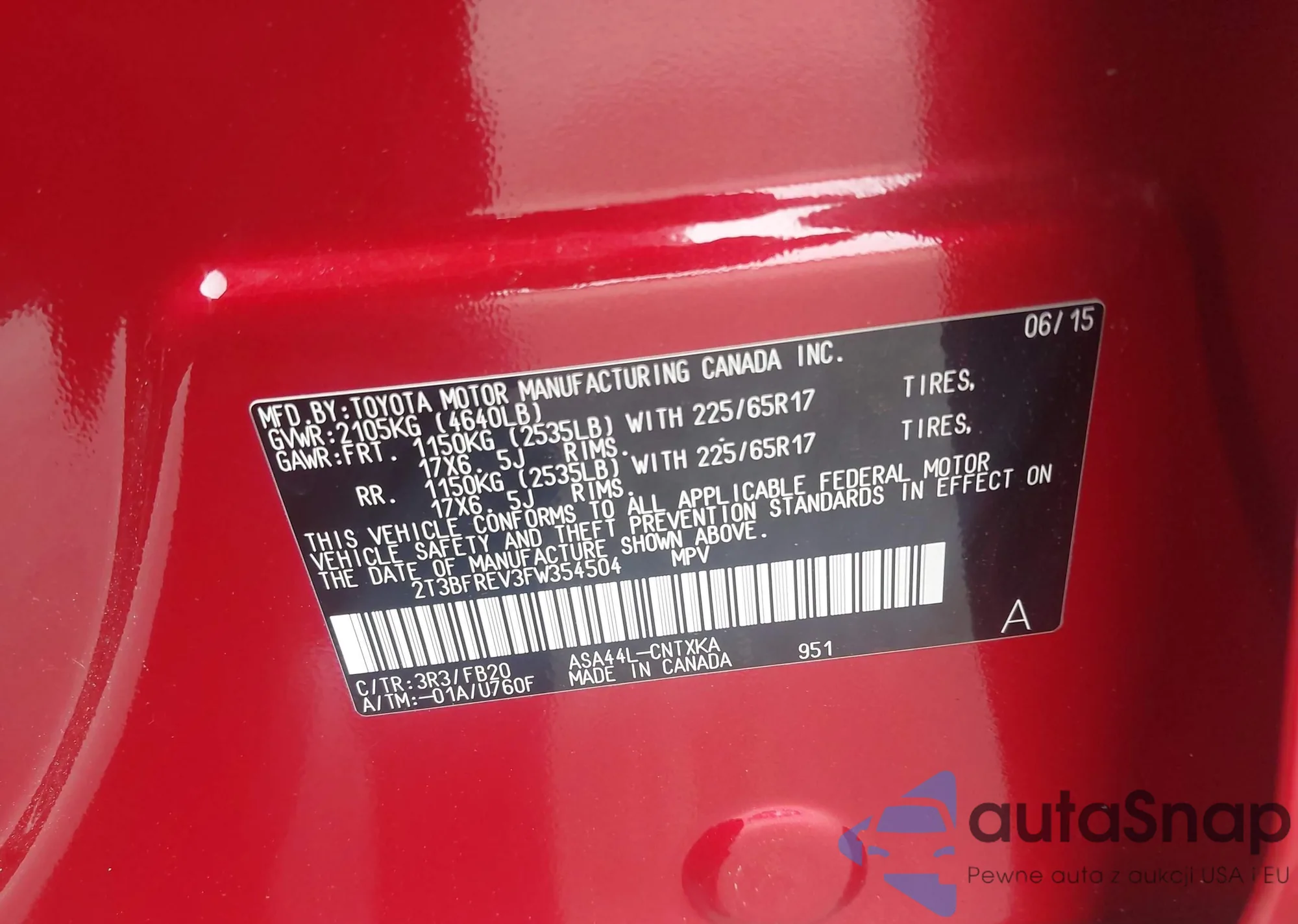 • VIN 3MW5R1J0XM8B54157