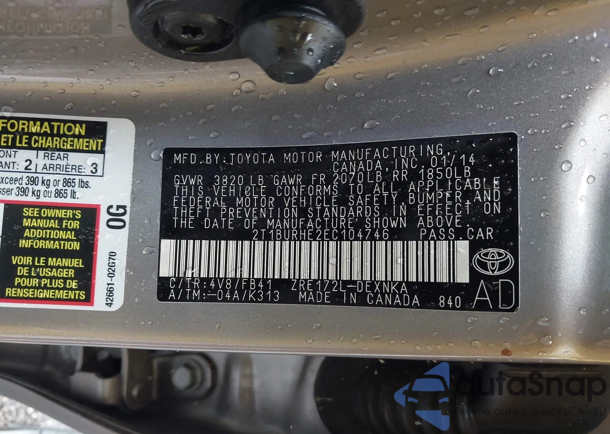 • VIN 2T1BURHE2EC104746