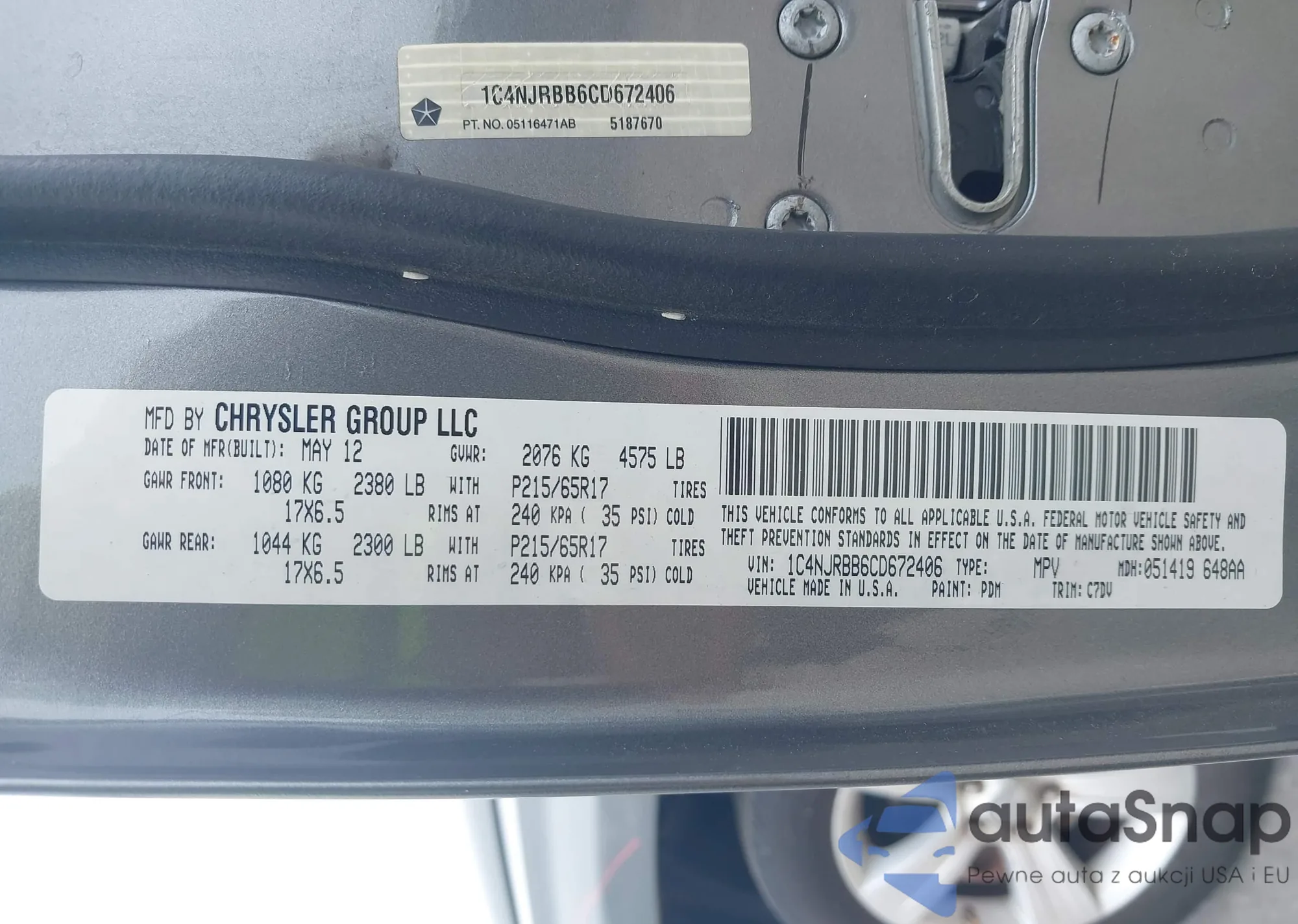 LOT: 42473526 VIN: 1C4NJRBB6CD672406