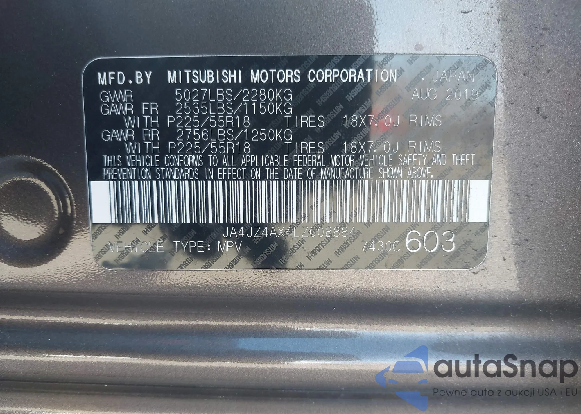 LOT: 41800171 VIN: JA4JZ4AX4LZ008884