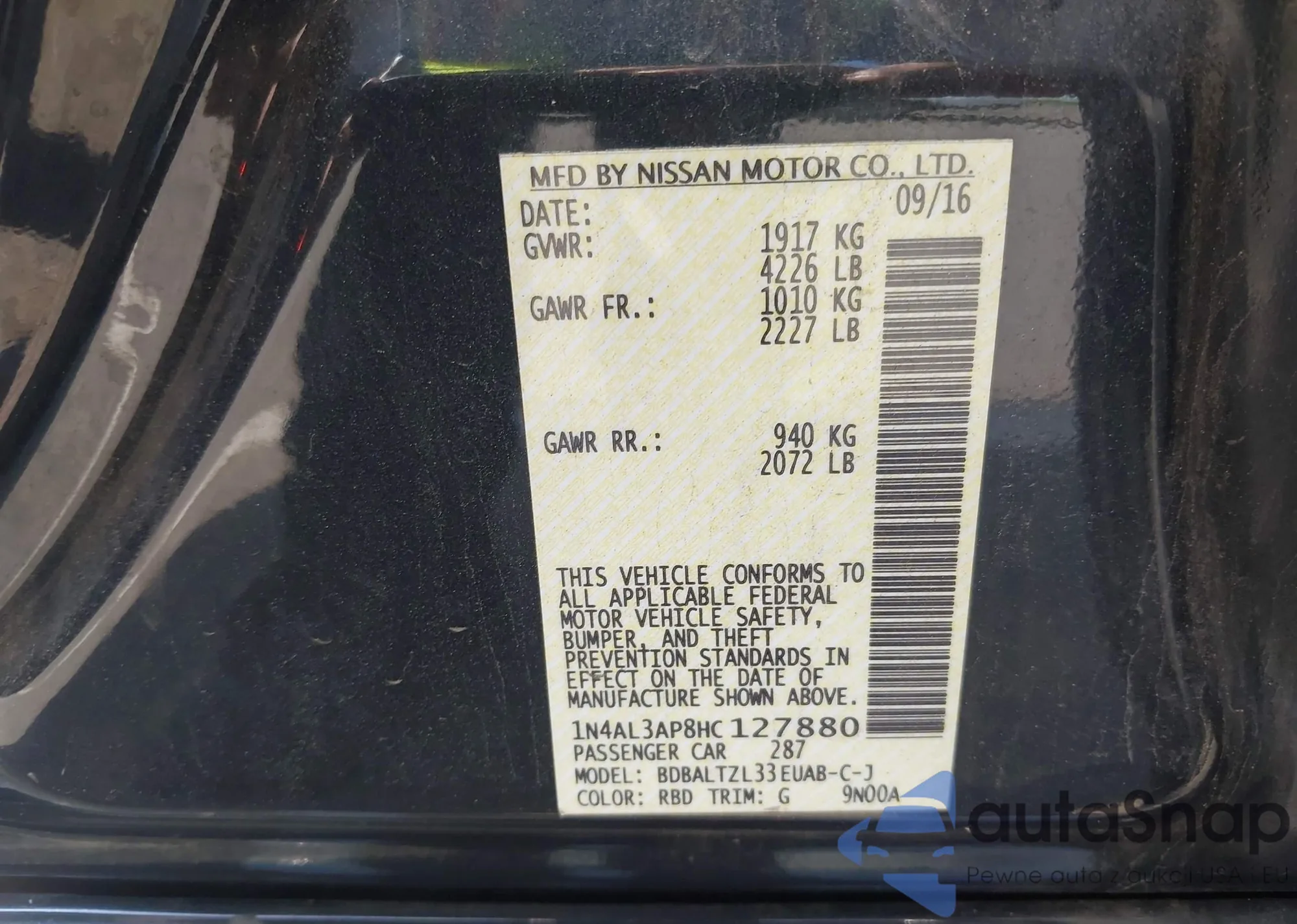 LOT: 42158244 VIN: 1N4AL3AP8HC127880