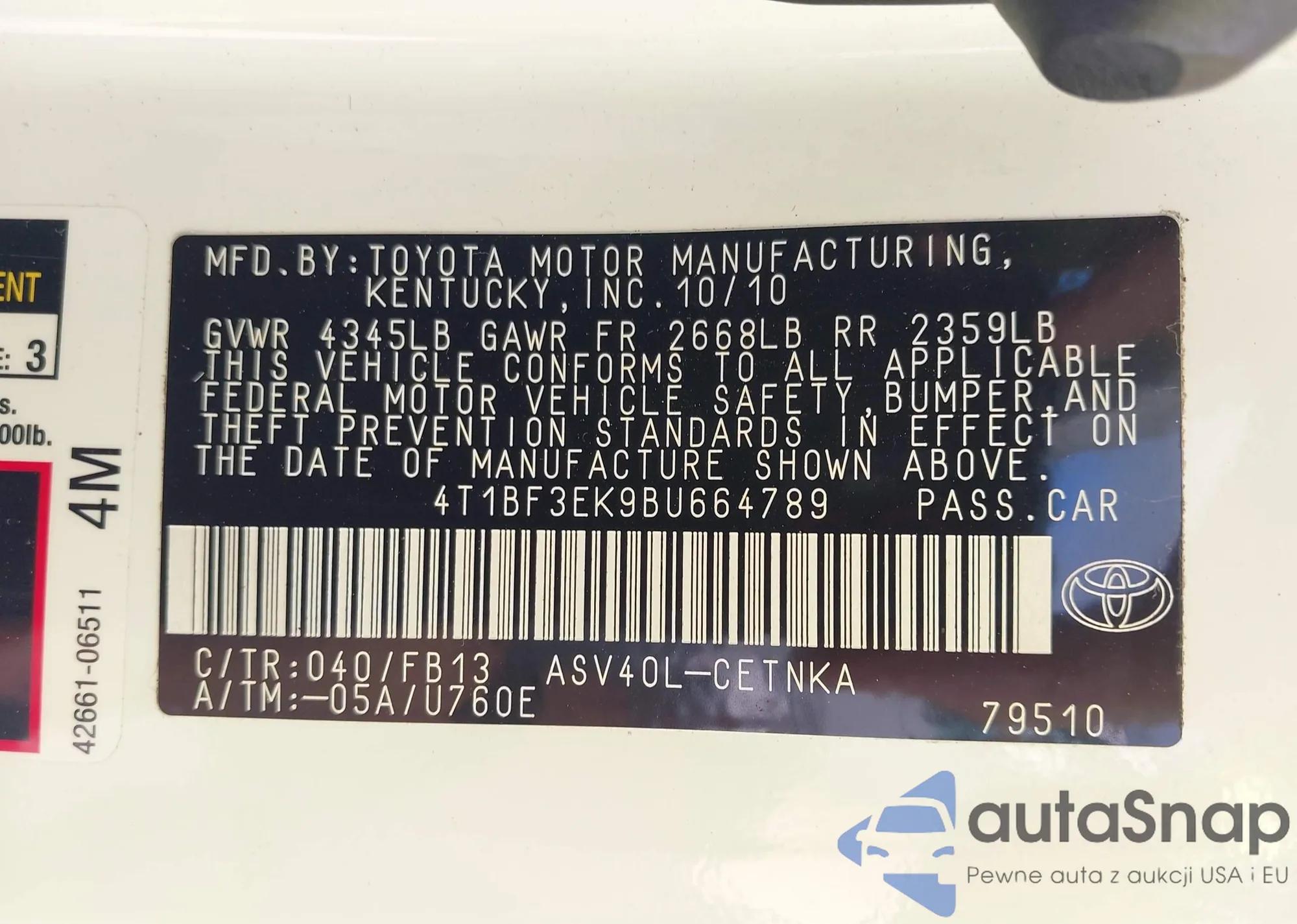 LOT: 42199244 VIN: 4T1BE30K94U326855