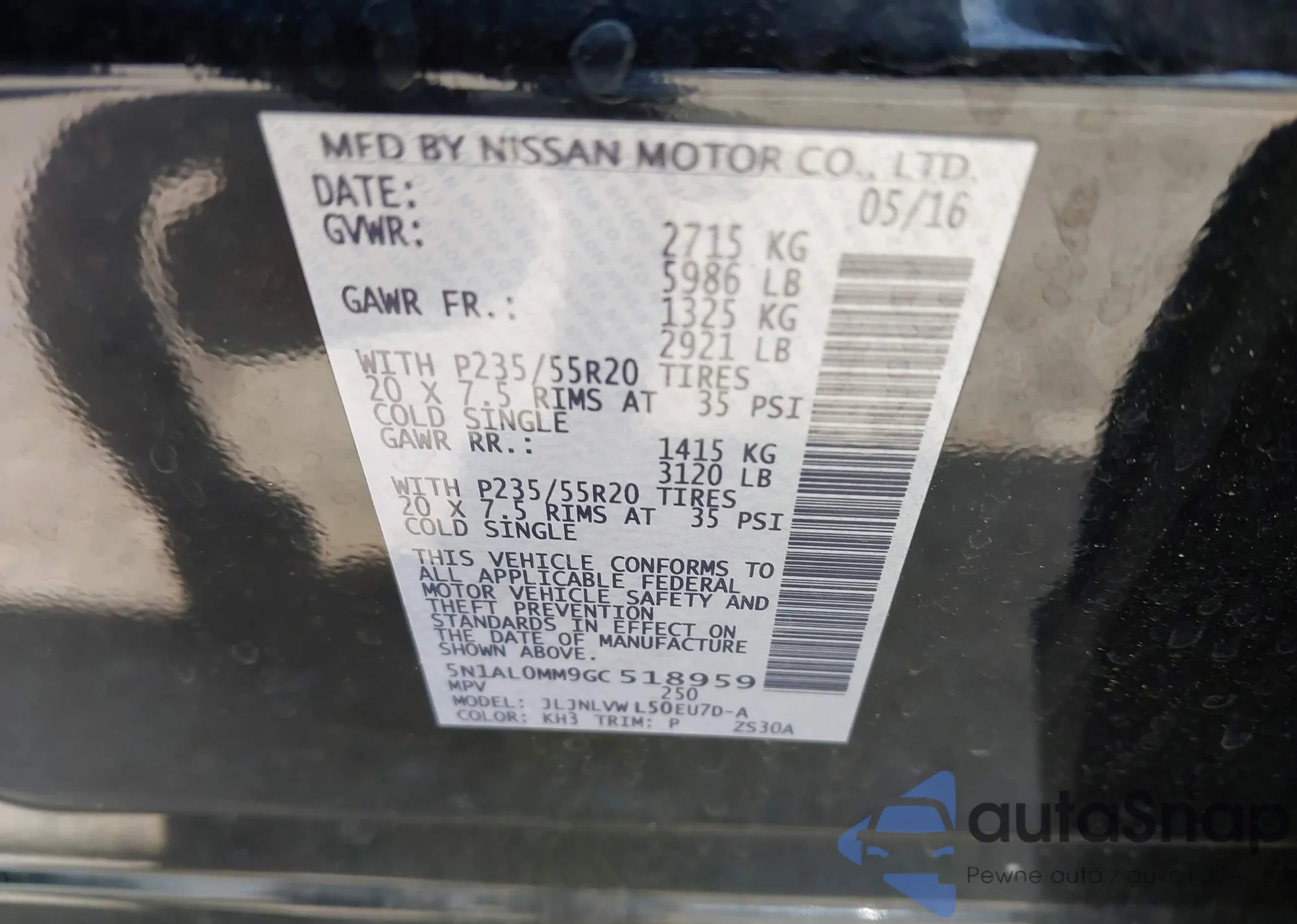 • VIN 1N6DD26S51C400420