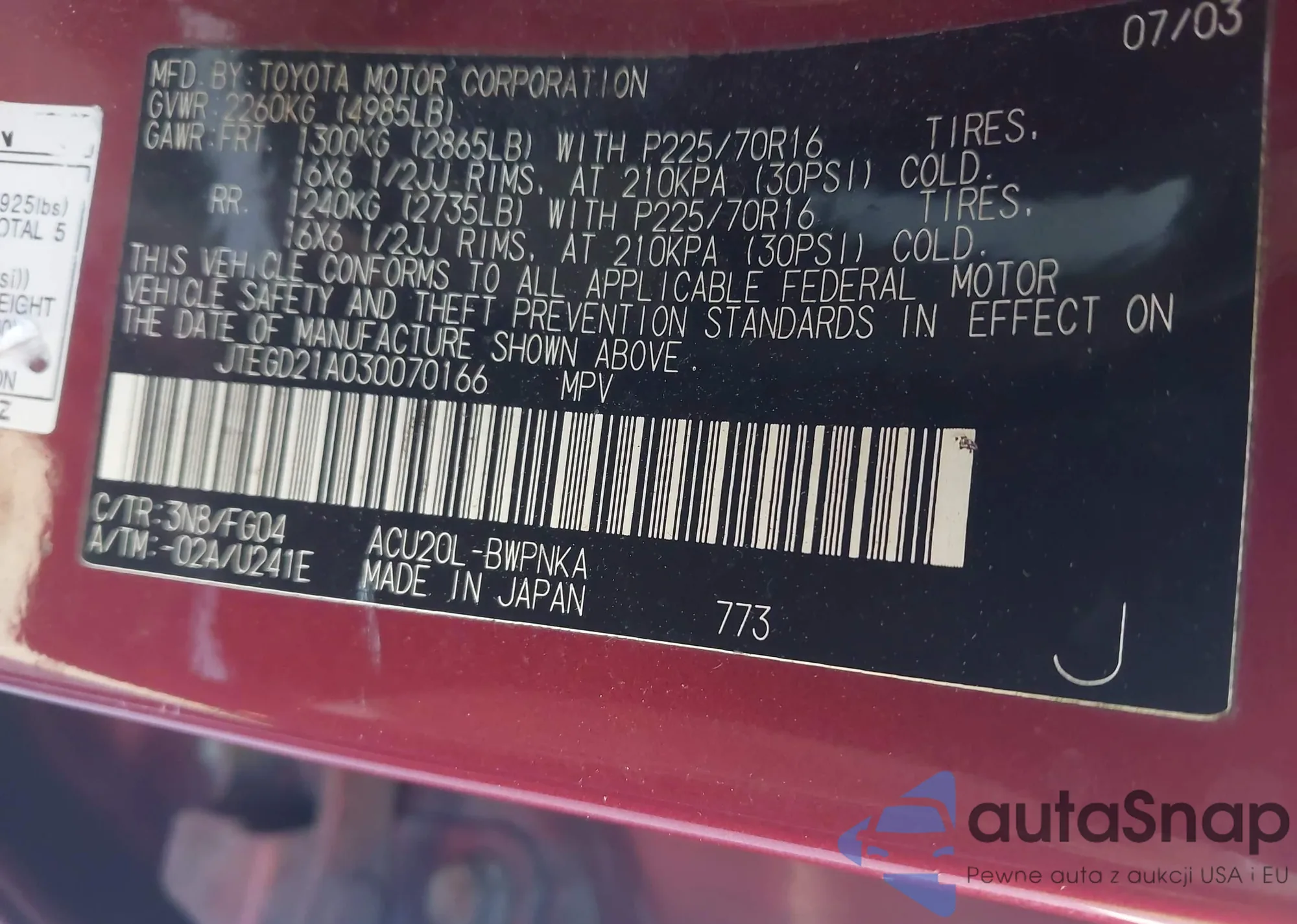 • VIN 4T1BE30K94U326855