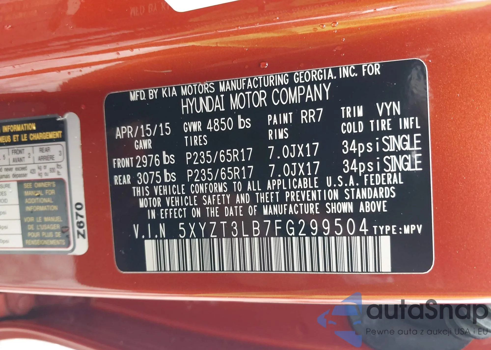 • VIN 5XYZT3LB7FG299504