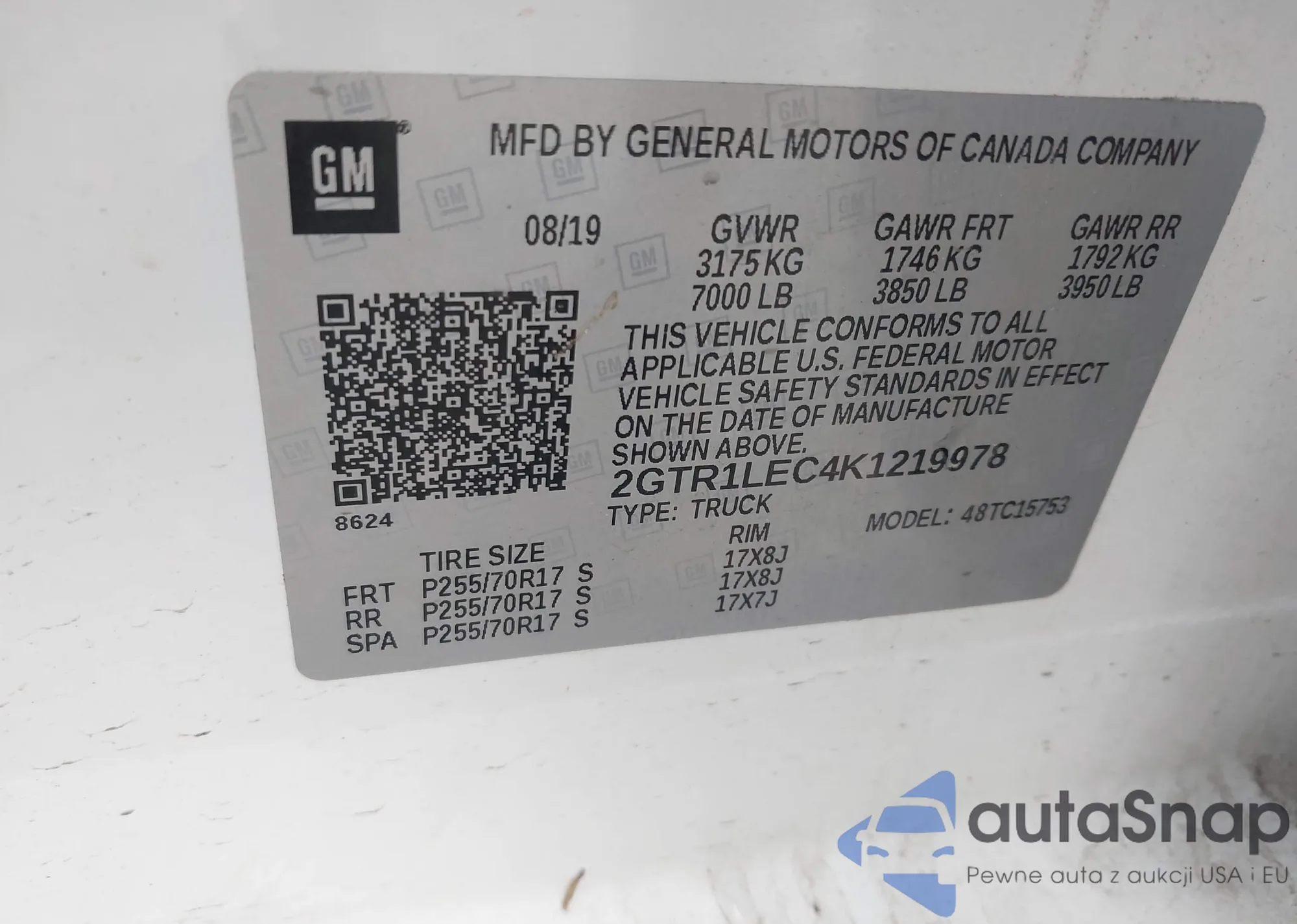 • VIN 2GTR1LEC4K1219978