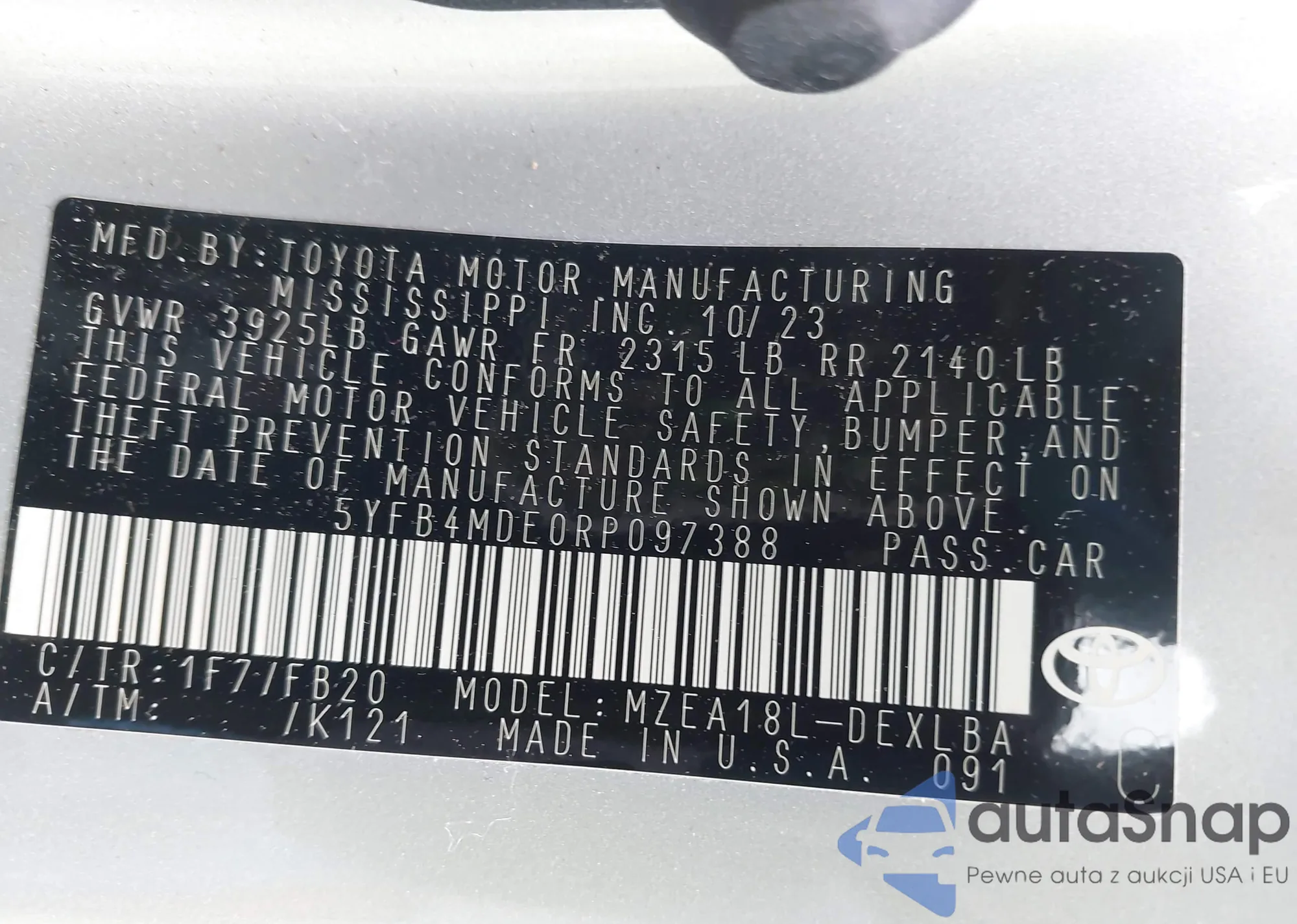 LOT: 42171232 VIN: 5YFB4MDE0RP097388