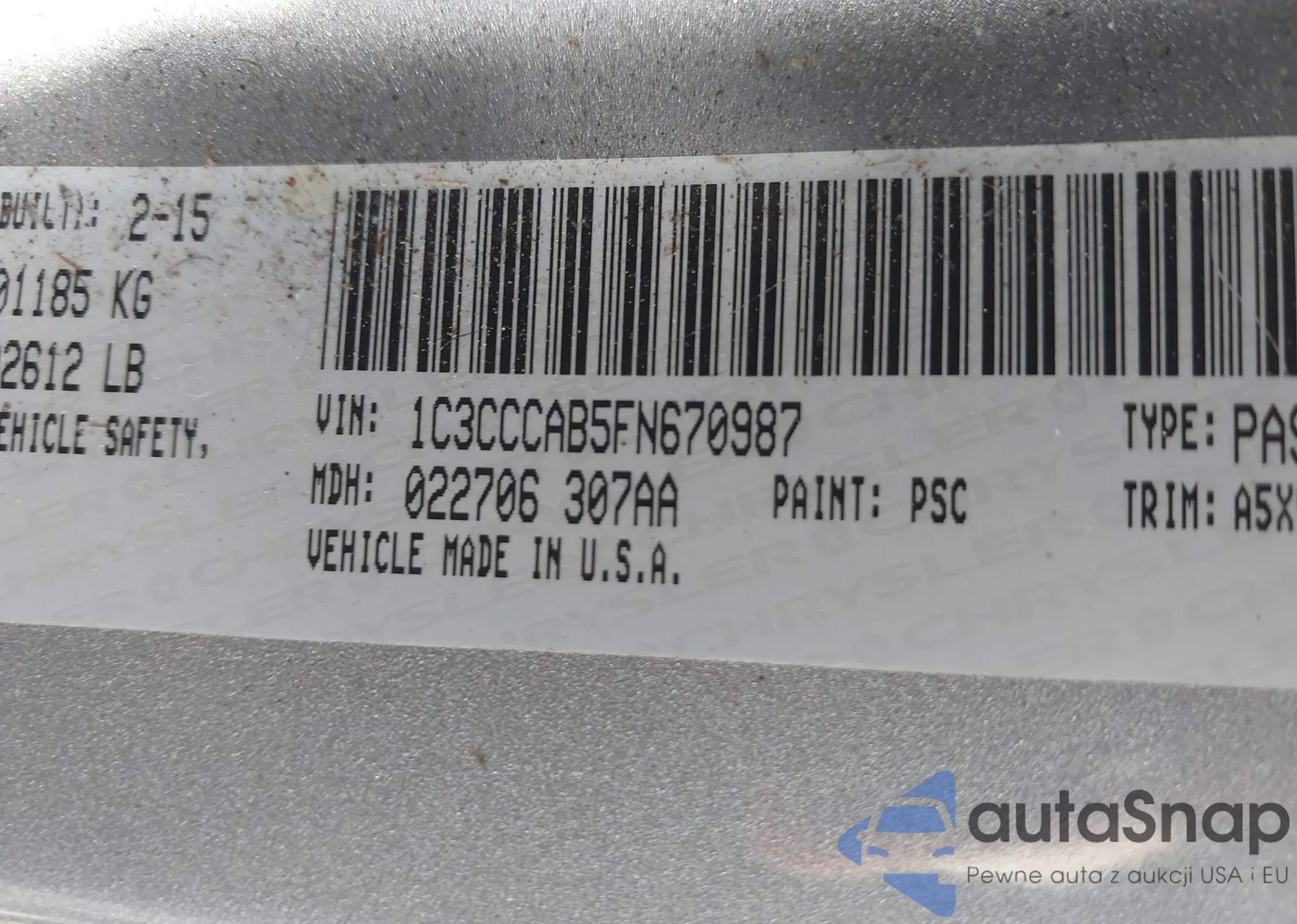 • VIN 1C3CCCAB5FN670987